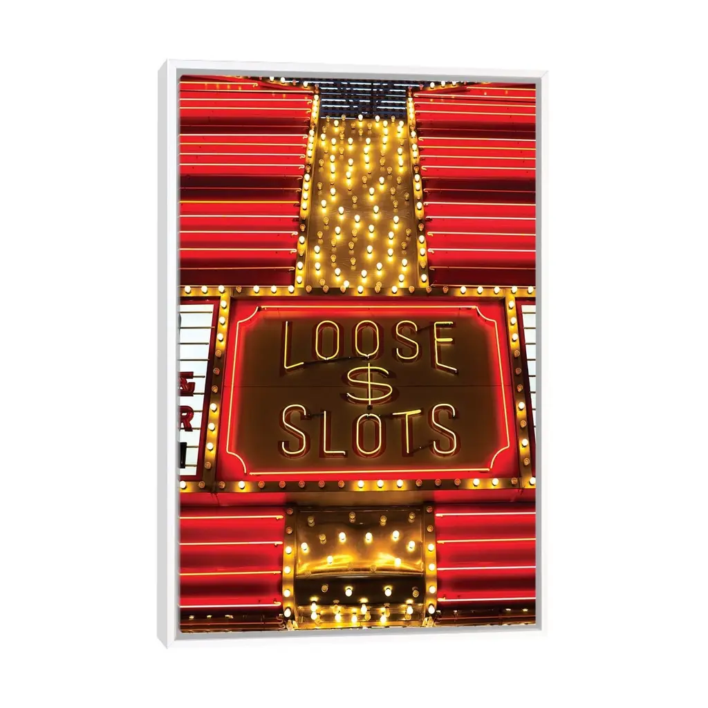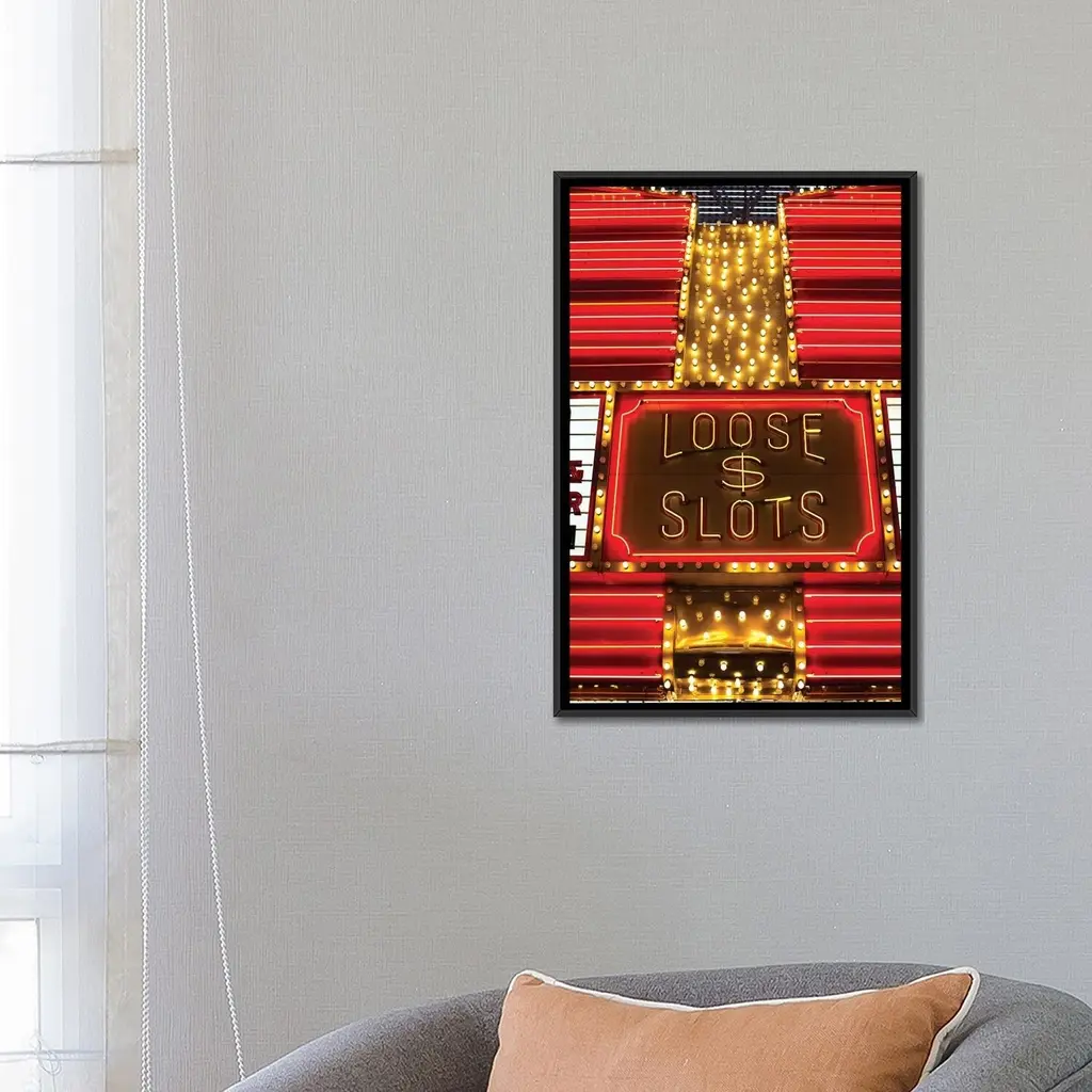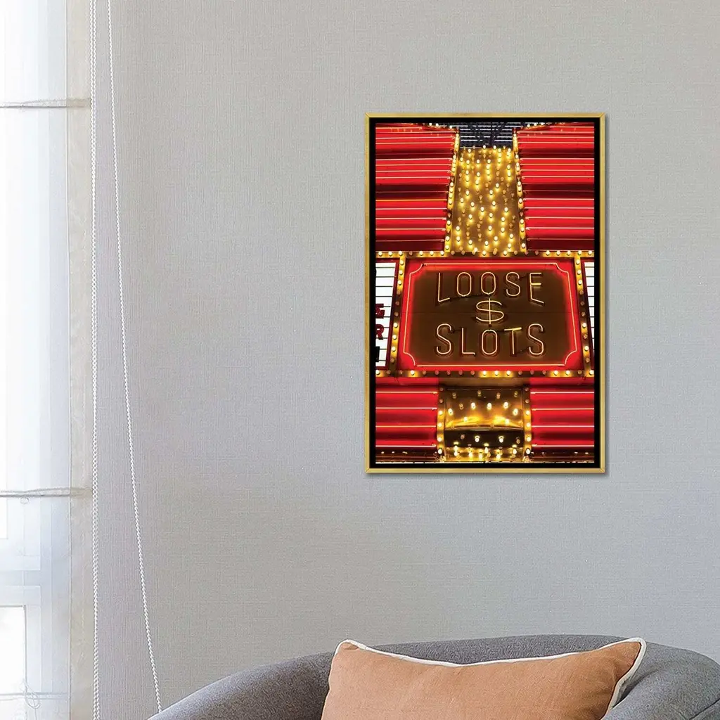 Icanvas "Neon Loose Slots Sign, Marquee, Sam Boyd's Fremont Hotel & Casino, Las Vegas" By Walter Bibikow Framed Canvas Print - 26x18 - Gold