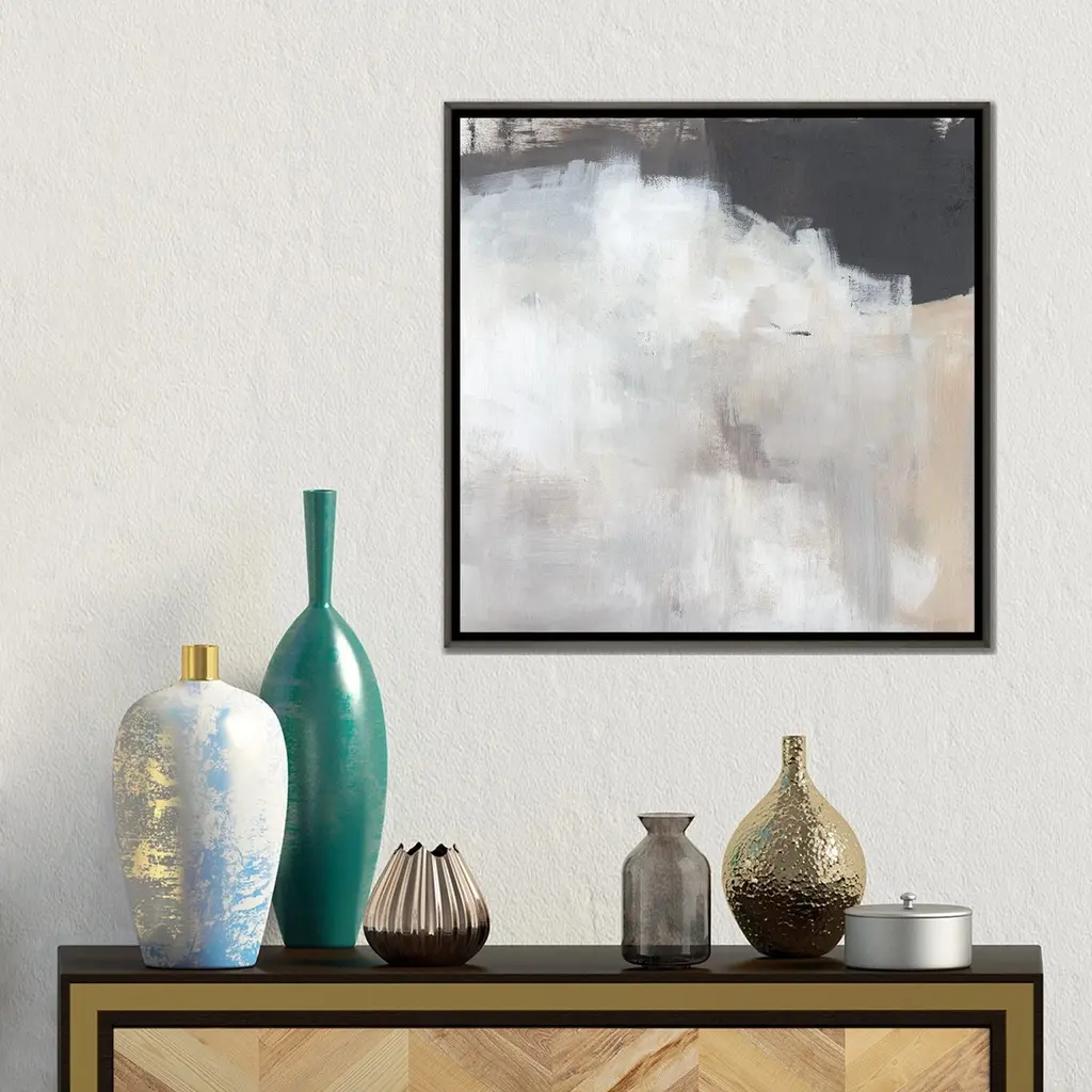 Icanvas "Neutral Abstract I" By Jennifer Paxton Parker Framed - 12x12 - Charcoal