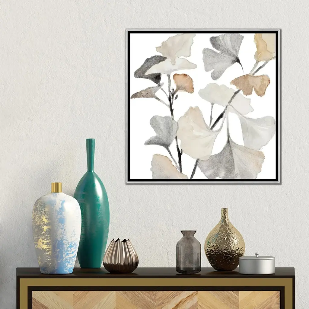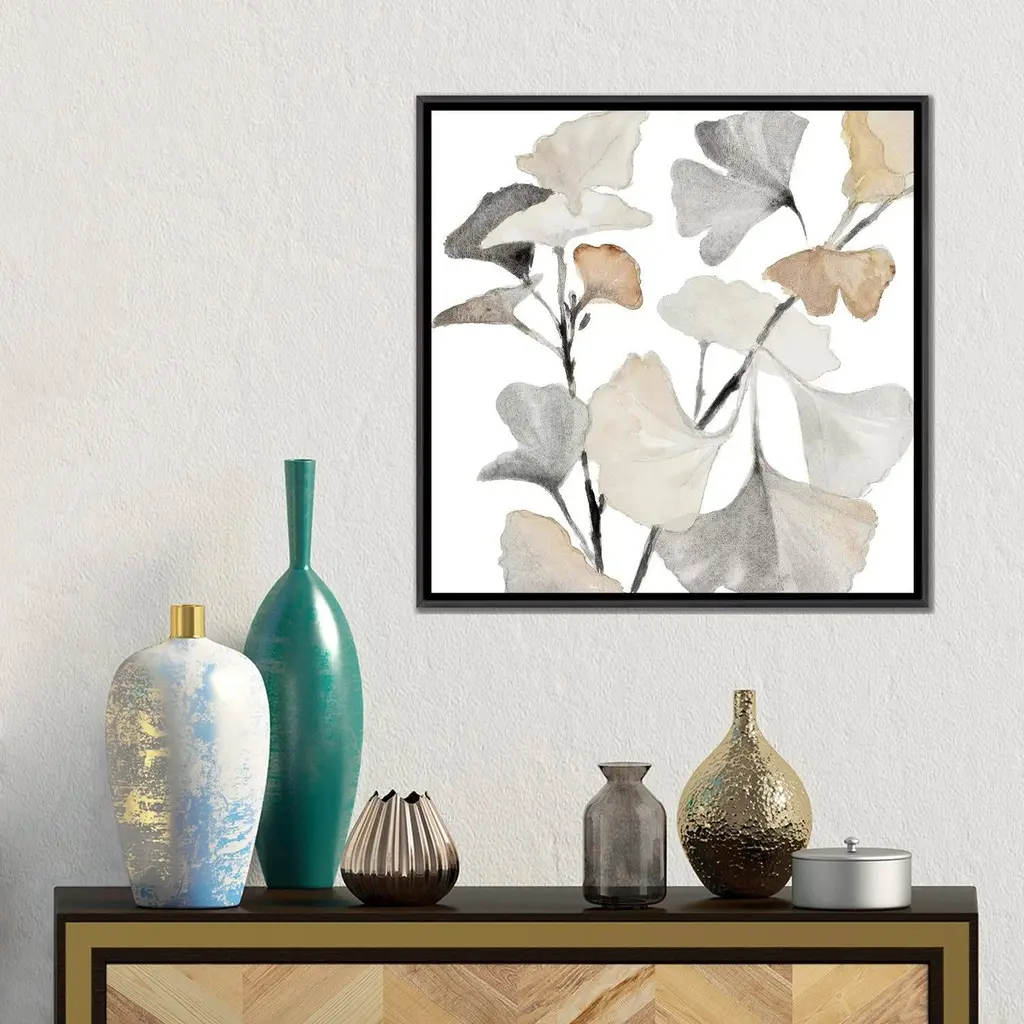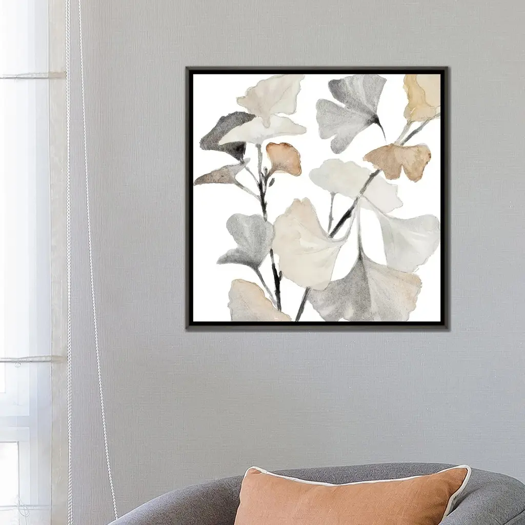Icanvas "Neutral Ginko Stems I" By Lanie Loreth Framed - 18x18 - Ebony