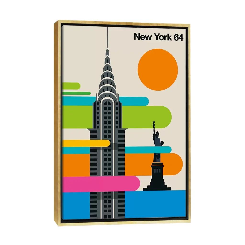 Icanvas "New York 64" By Bo Lundberg Framed Canvas Print - Black - 40x26