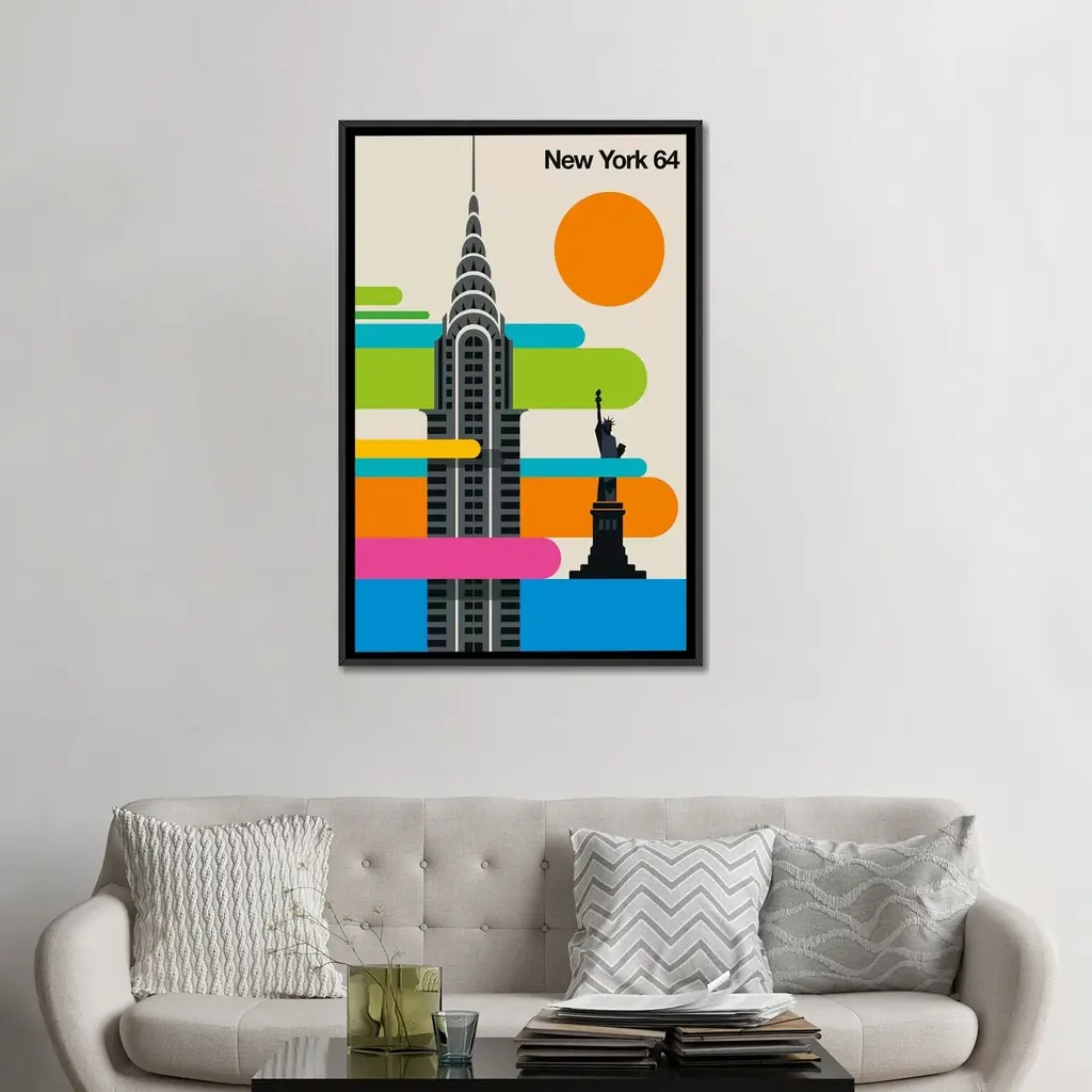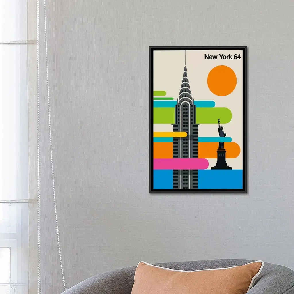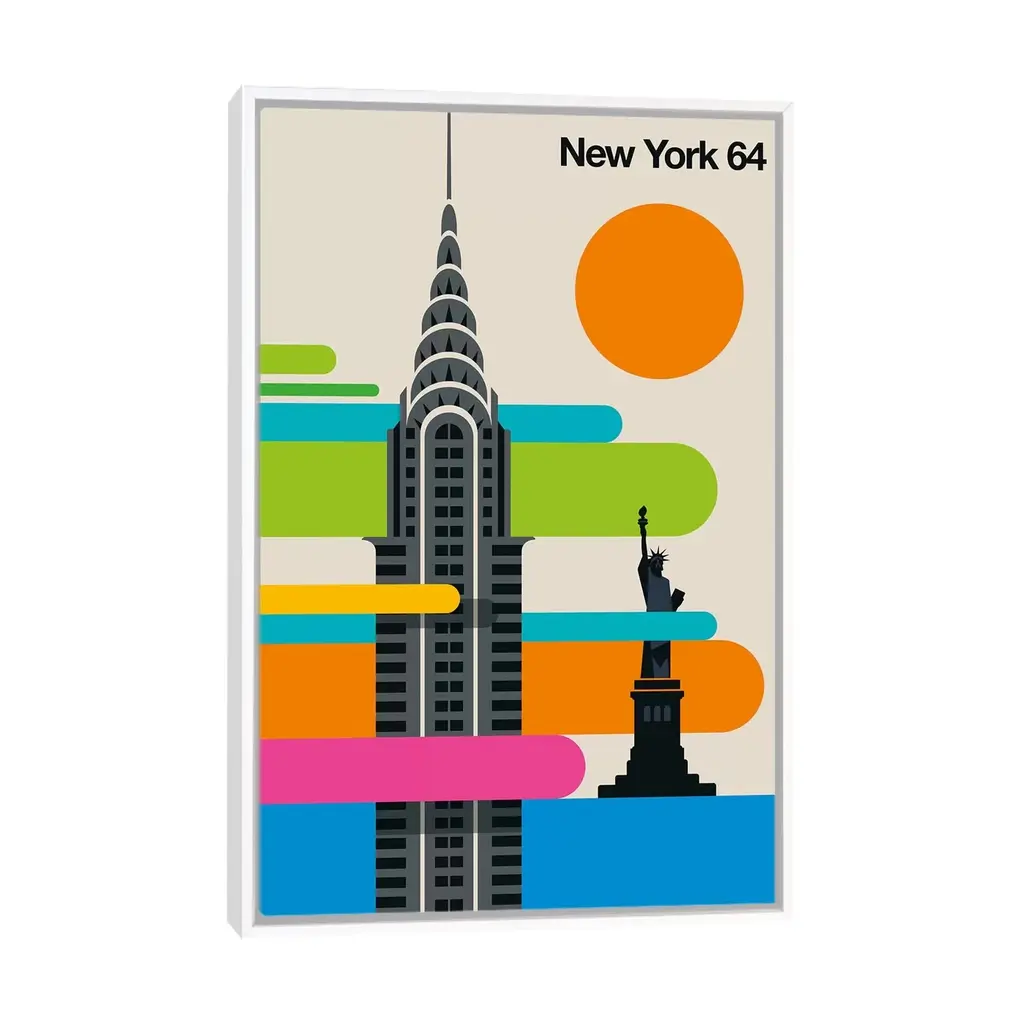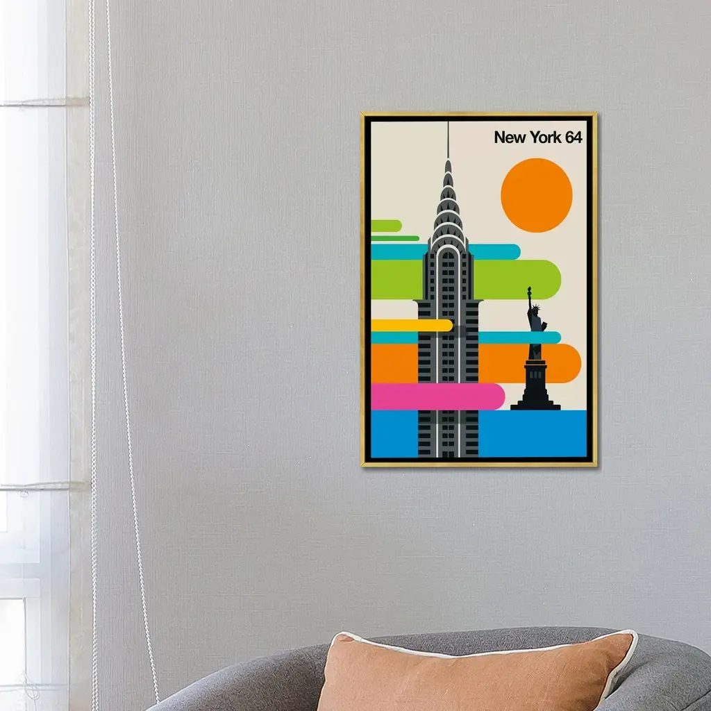 Icanvas "New York 64" By Bo Lundberg Framed Canvas Print - Gold - 48x32
