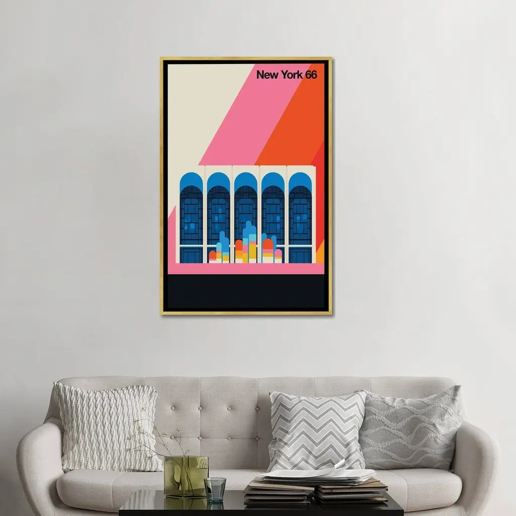 Icanvas "New York 66" By Bo Lundberg Framed Canvas Print - White - 26x18