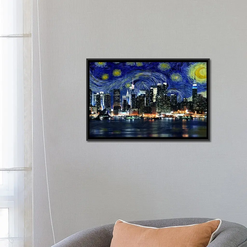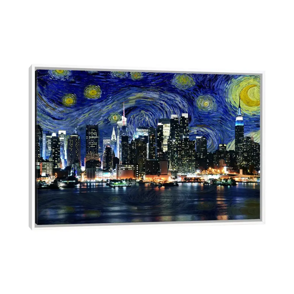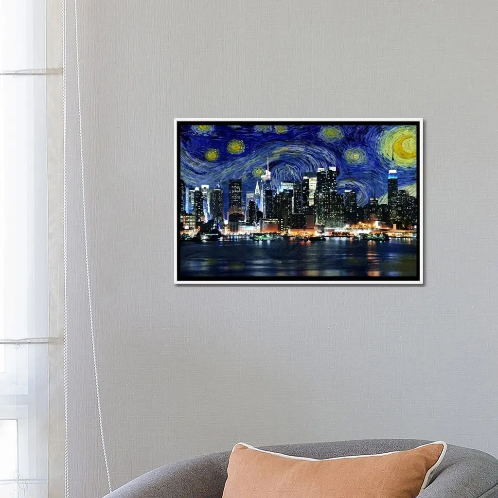 Icanvas "New York City, New York Starry Night Skyline" By 5By5collective Framed Canvas Print - White - 18x26