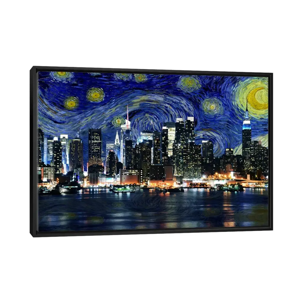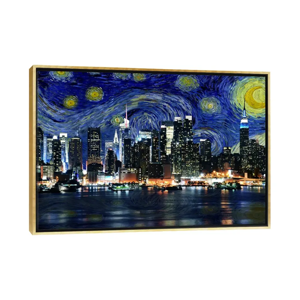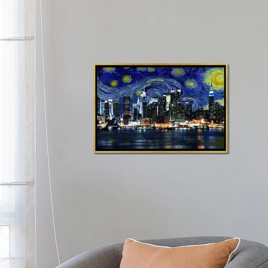 Icanvas "New York City, New York Starry Night Skyline" By 5By5collective Framed Canvas Print - White - 18x26