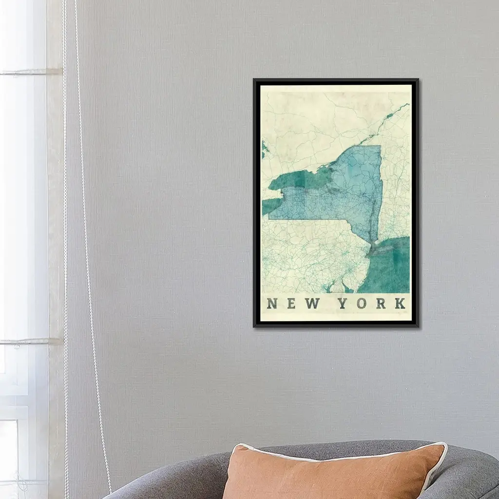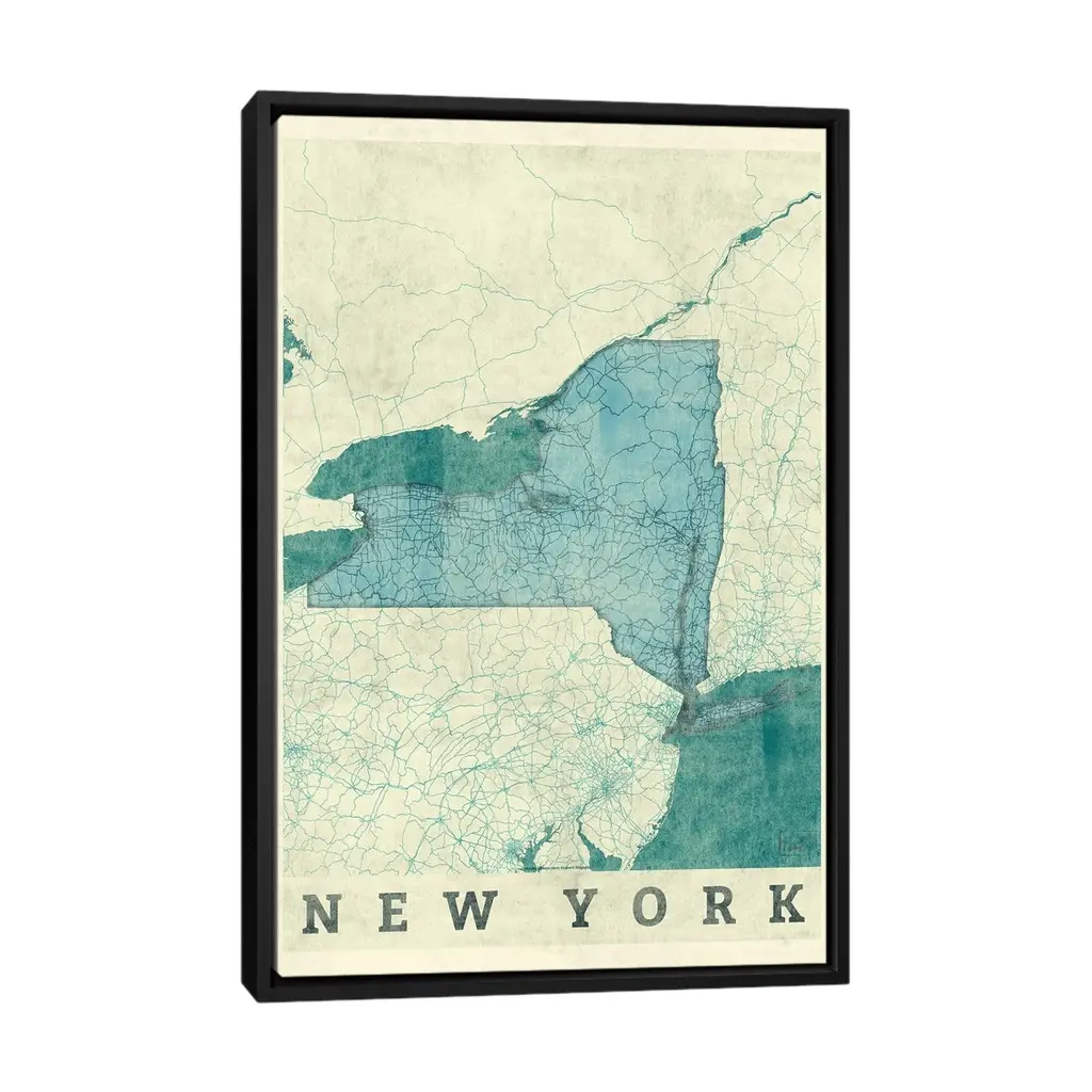 Icanvas "New York Map" By Hubert Roguski Framed - Black - 48x32