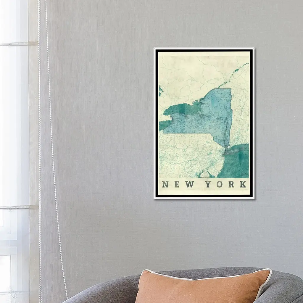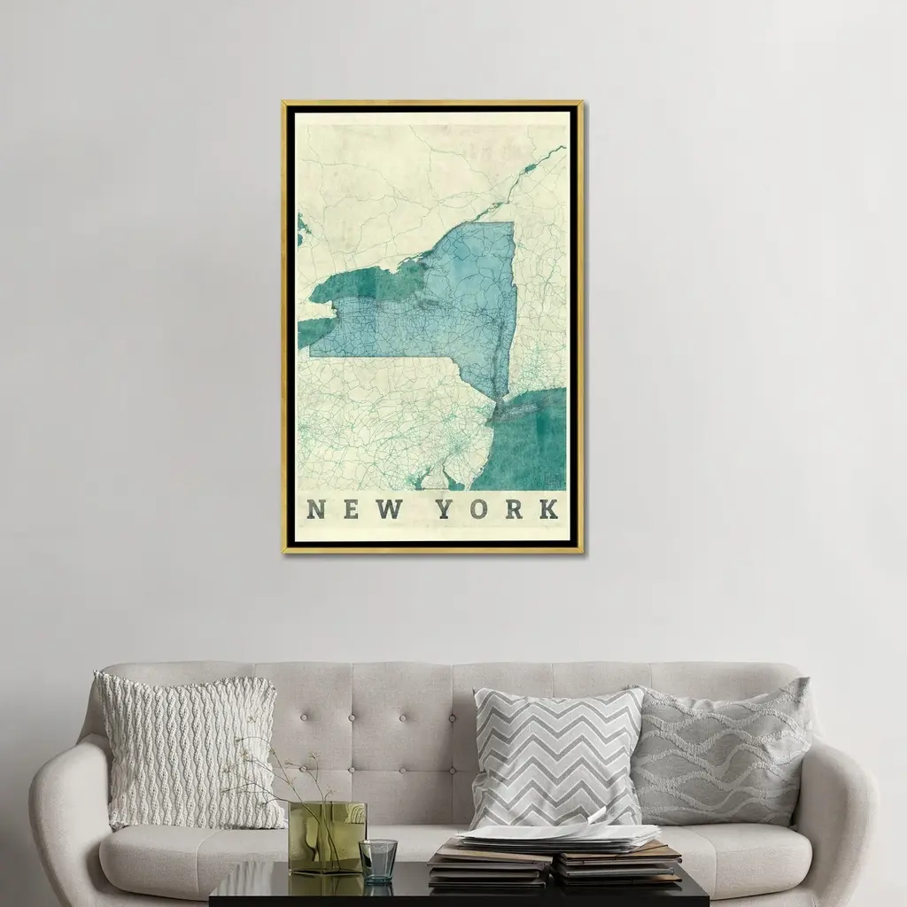 Icanvas "New York Map" By Hubert Roguski Framed - Gold - 48x32