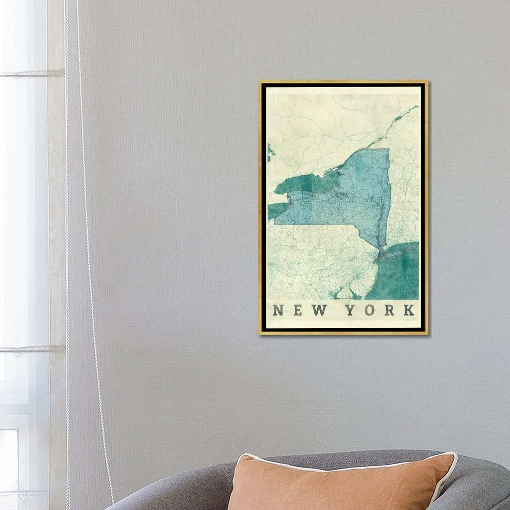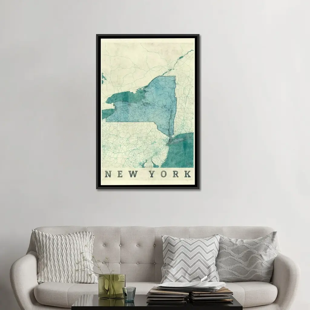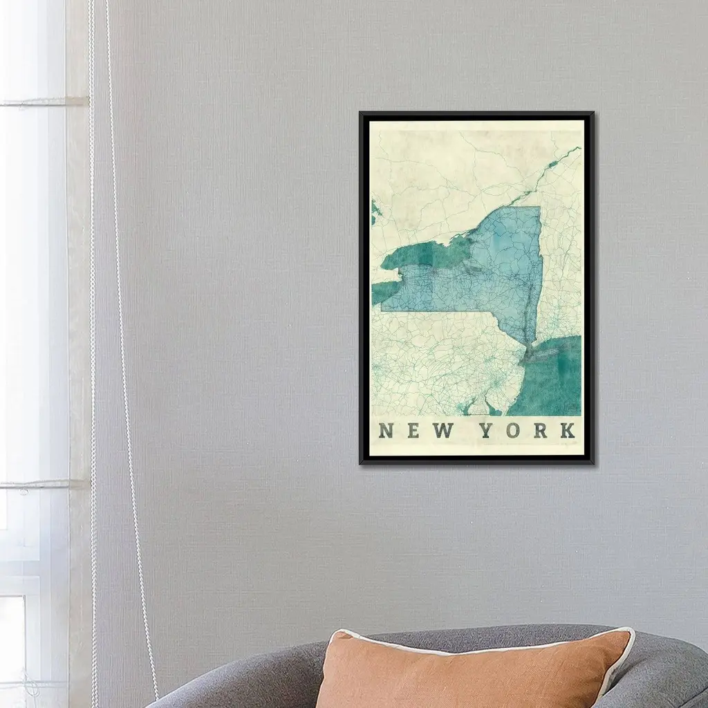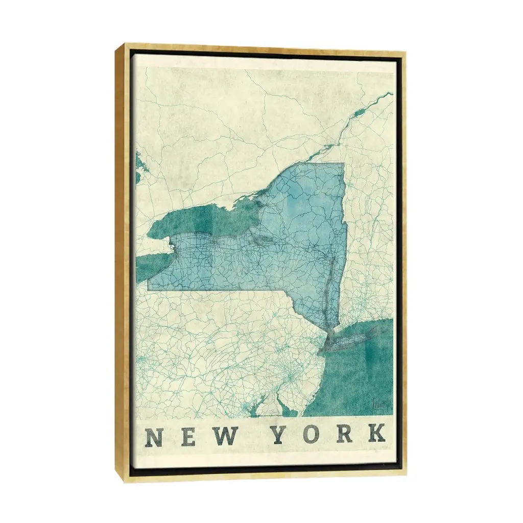 Icanvas "New York Map" By Hubert Roguski Framed - White - 26x18