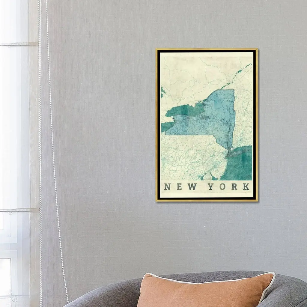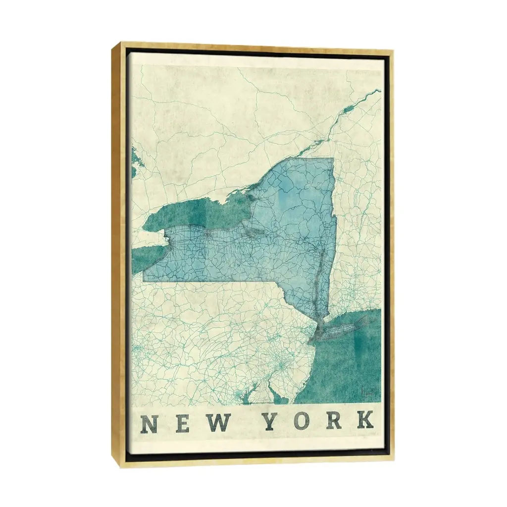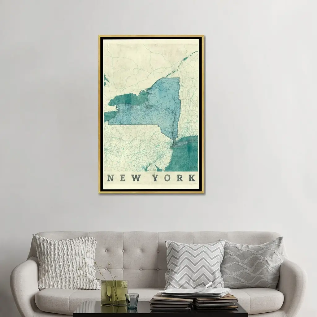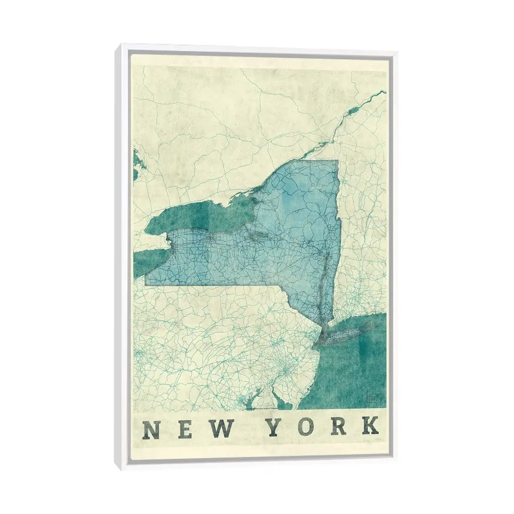 Icanvas "New York Map" By Hubert Roguski Framed - White - 40x26