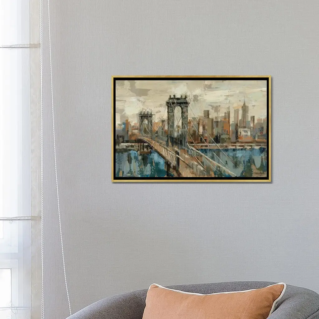 Icanvas "New York View" By Silvia Vassileva Framed Canvas Print - Gold - 32x48