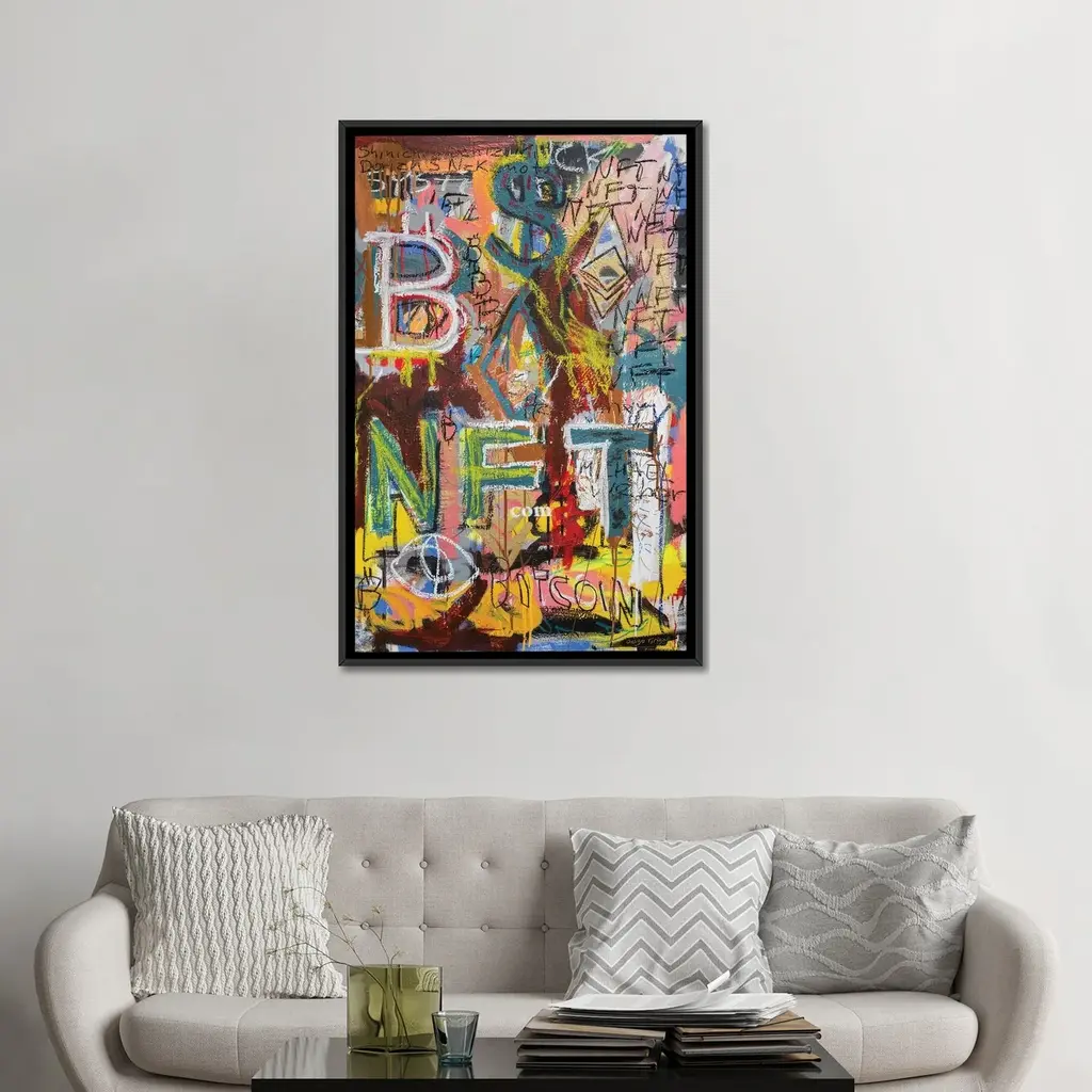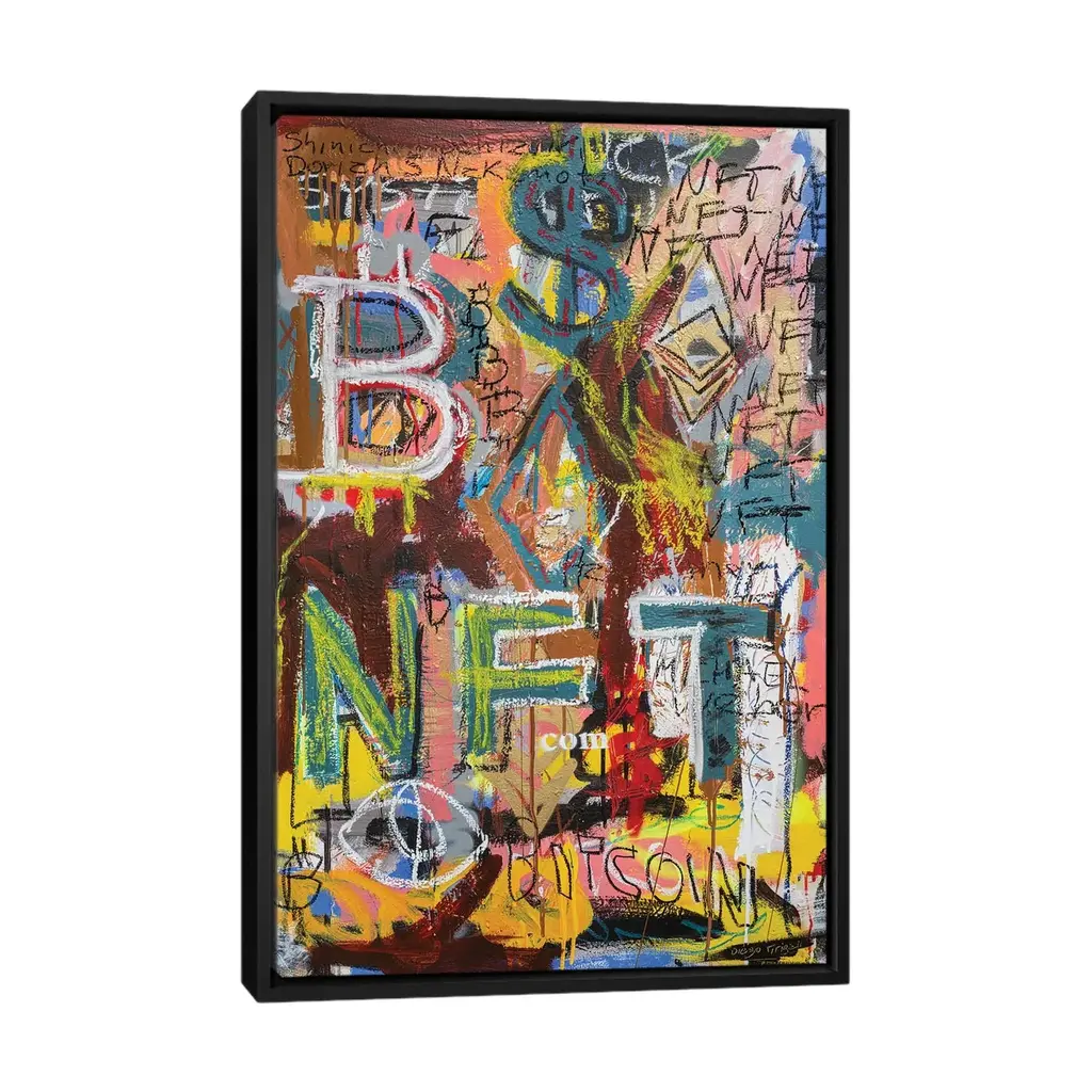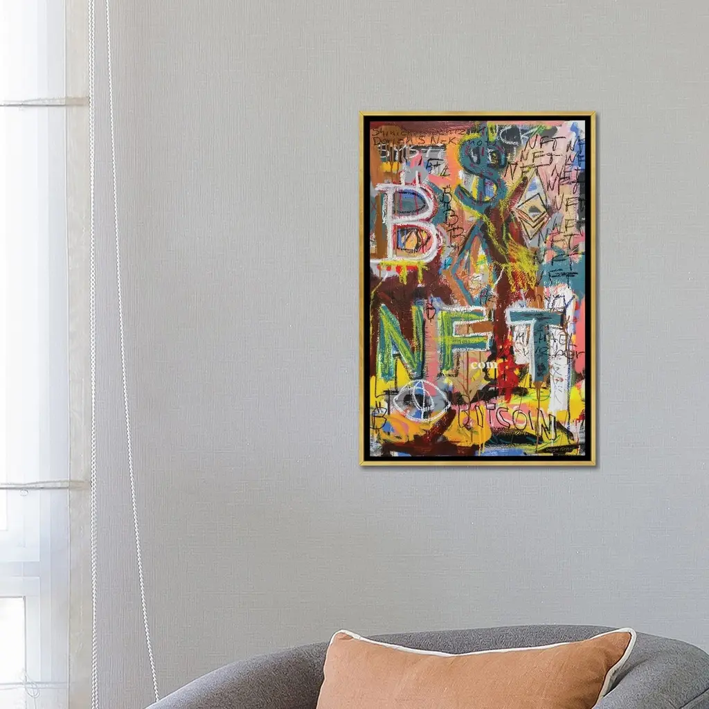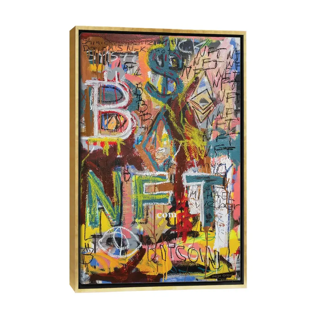 Icanvas "Nft World" By Diego Tirigall Framed - Gold - 26x18