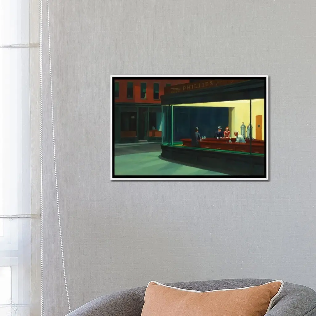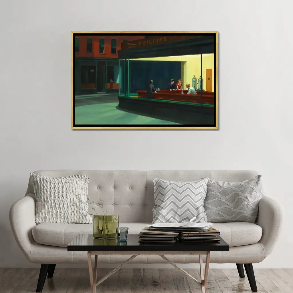 Icanvas "Nighthawks, 1942" By Edward Hopper Framed Canvas Print - Gold - 26x40