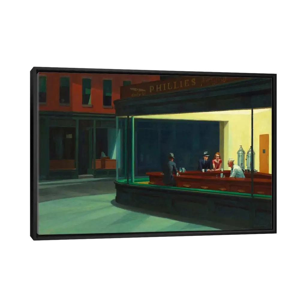 Icanvas "Nighthawks, 1942" By Edward Hopper Framed Canvas Print - Gold - 32x48