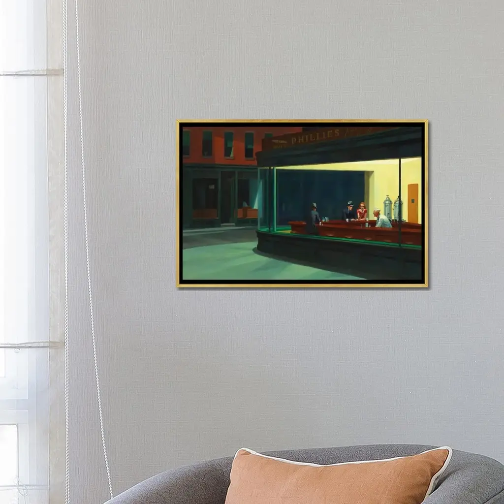Icanvas "Nighthawks, 1942" By Edward Hopper Framed Canvas Print - White - 26x40