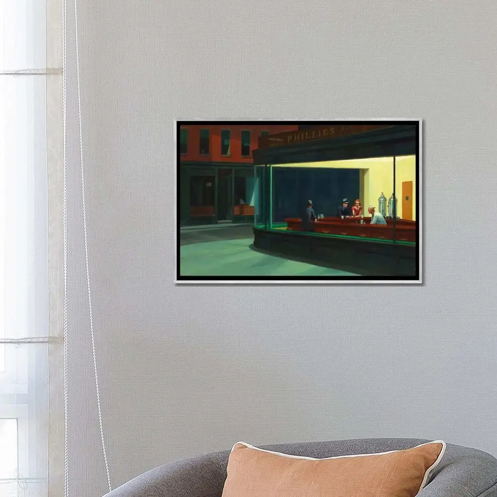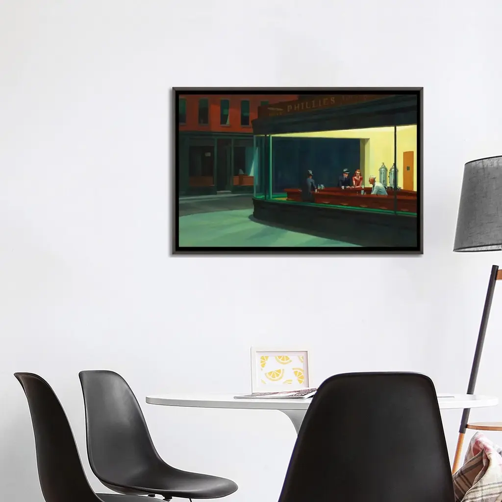 Icanvas "Nighthawks, 1942" By Edward Hopper Framed - Charcoal - 18x26