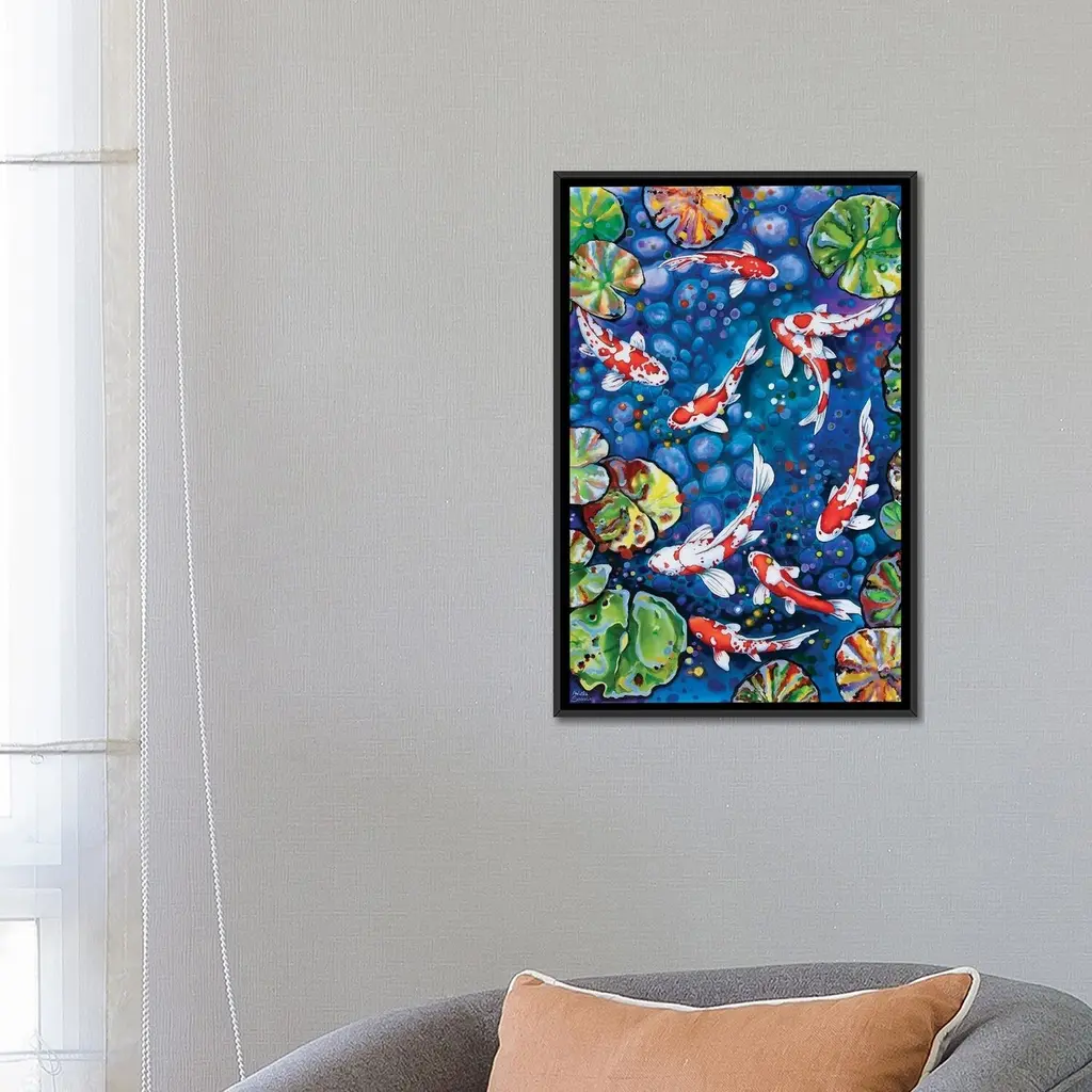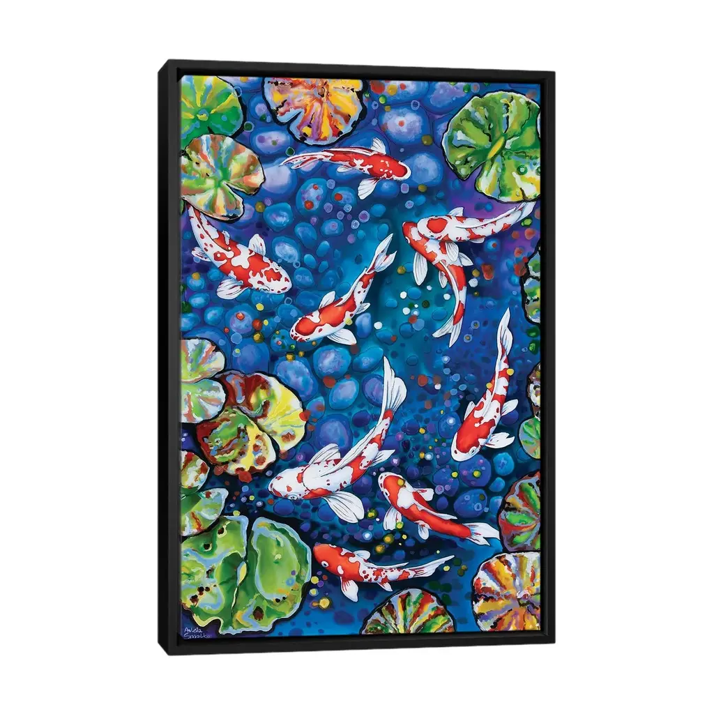 Icanvas "Nine Red Koi" By Arleta Smolko Framed Canvas Print - Black - 40x26