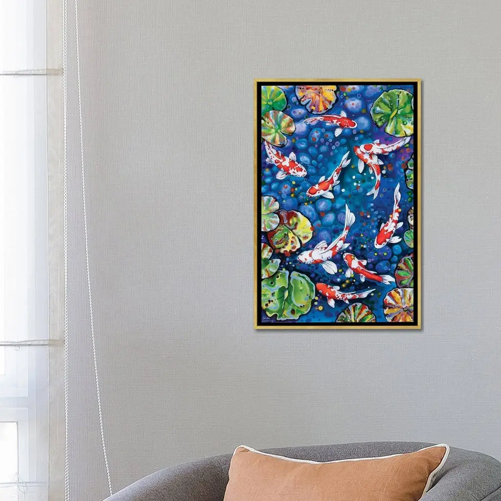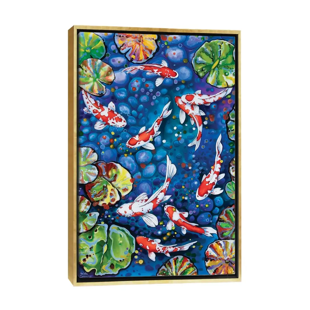 Icanvas "Nine Red Koi" By Arleta Smolko Framed Canvas Print - Gold - 26x18