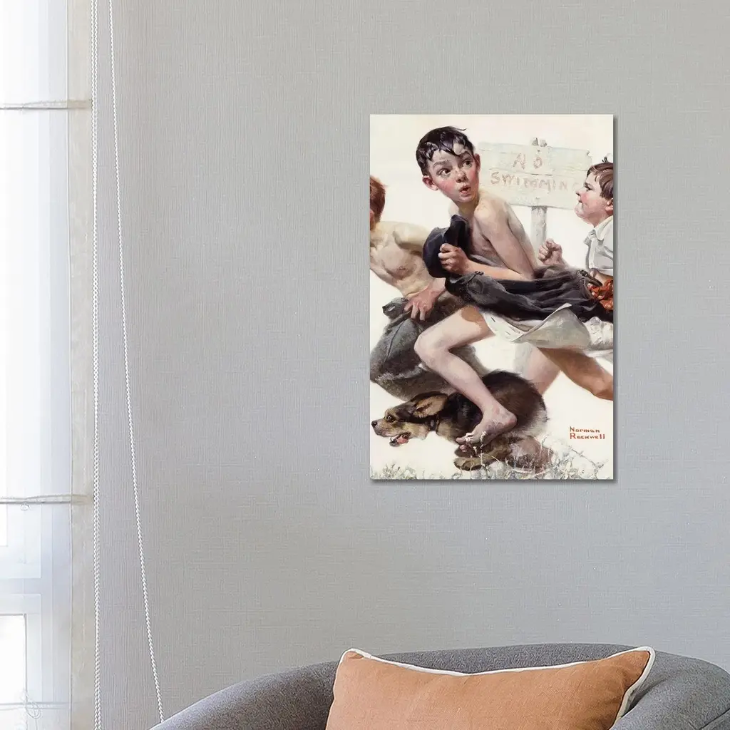 Icanvas "No Swimming" By Norman Rockwell Canvas Print - 12x8x0.75