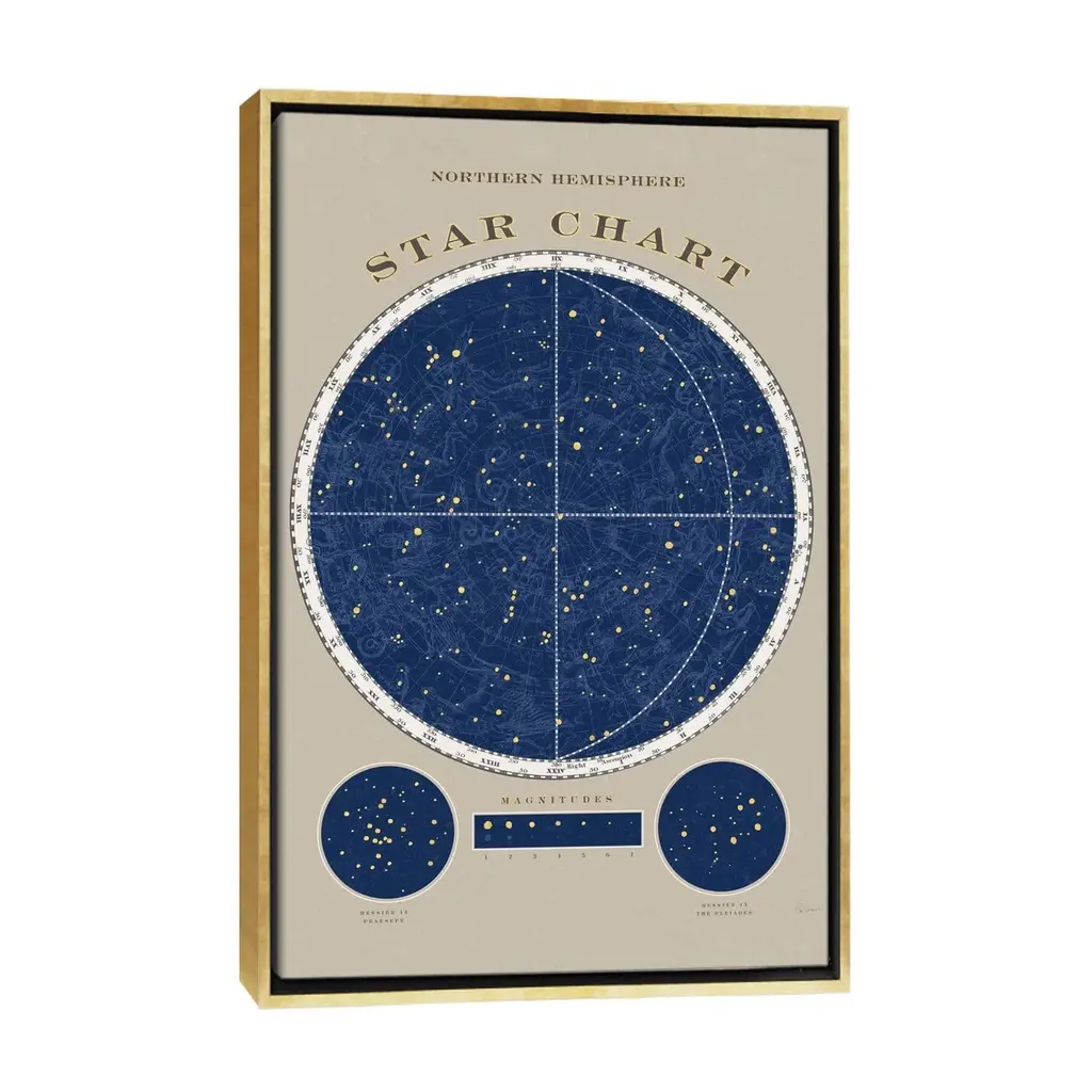 Icanvas "Northern Hemisphere Star Chart" By Sue Schlabach Framed Canvas Print - Black - 26x18