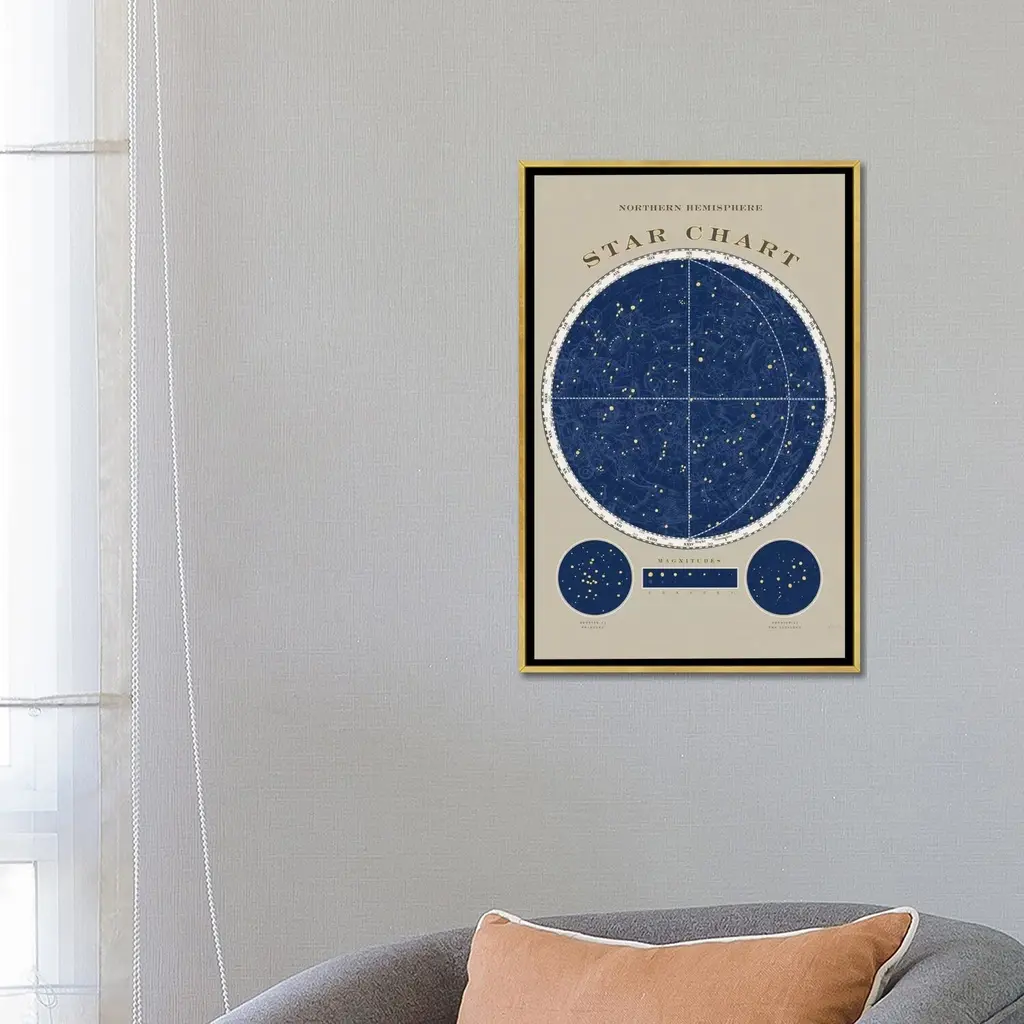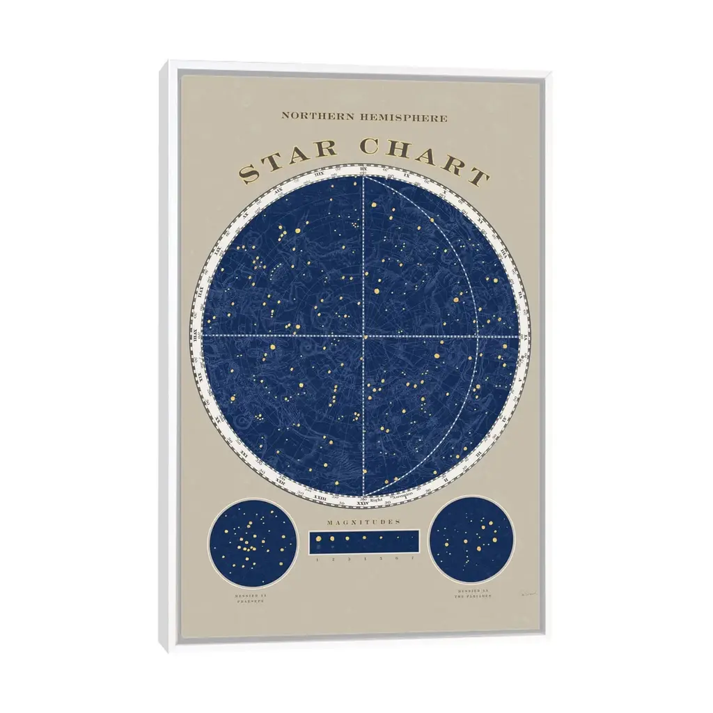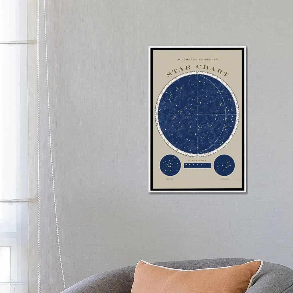 Icanvas "Northern Hemisphere Star Chart" By Sue Schlabach Framed Canvas Print - White - 26x18