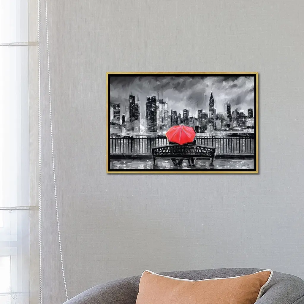 Icanvas "Ny In Love In Red" By P.d. Moreno Framed Canvas Print - White - 26x40