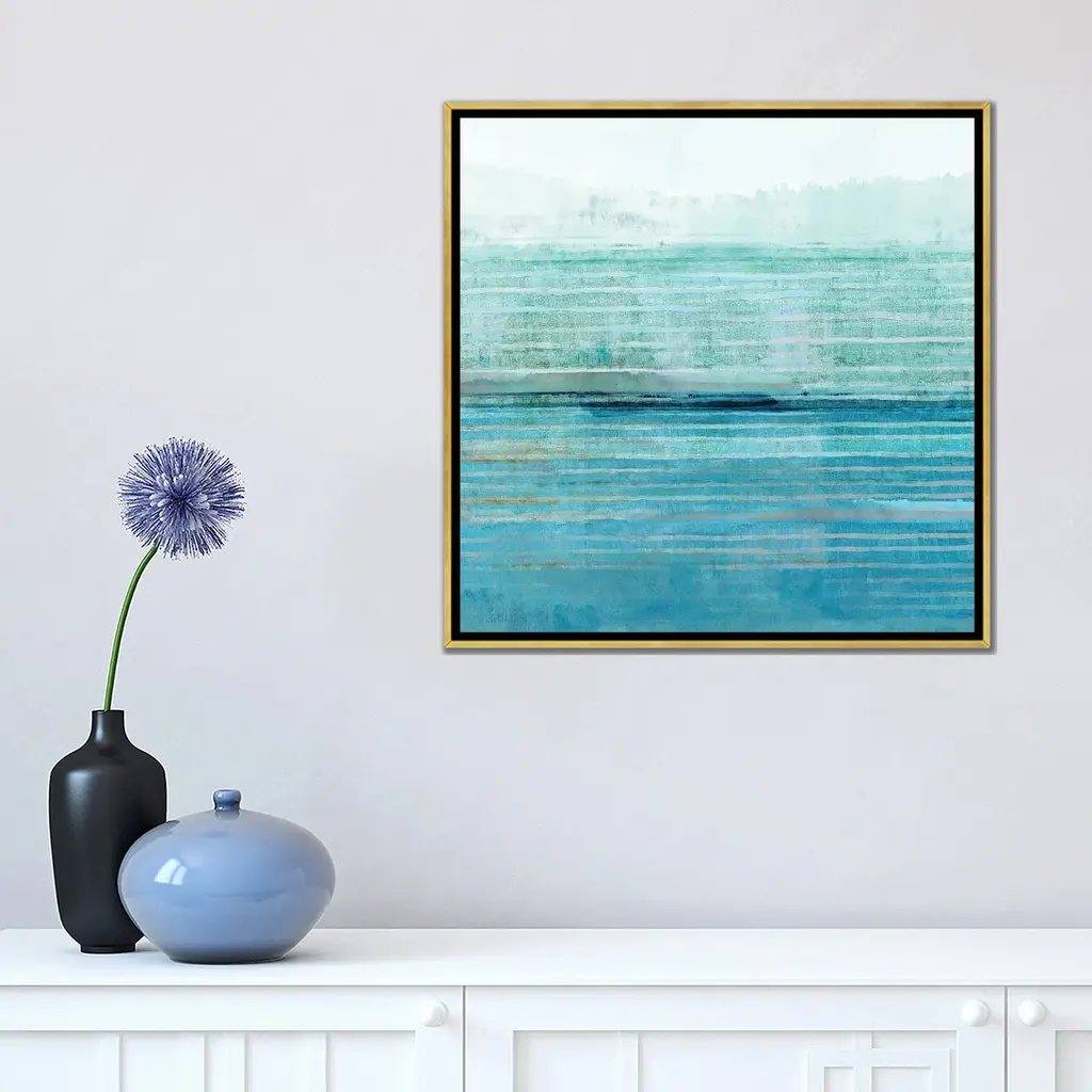 Icanvas "Ocean Daydream Ii" By Flora Kouta Framed Canvas Print - 18x18 - Gold