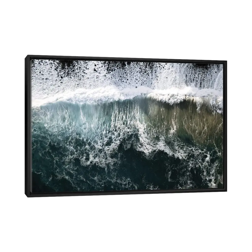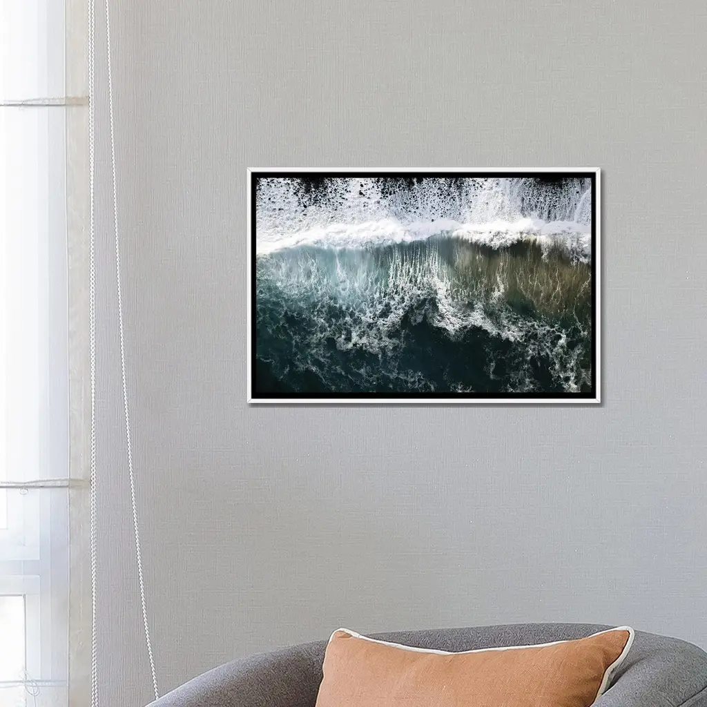 Icanvas "Oceanscape With Waves Coming Onto A Black Beach" By Michael Schauer Framed Canvas Print - Black - 32x48