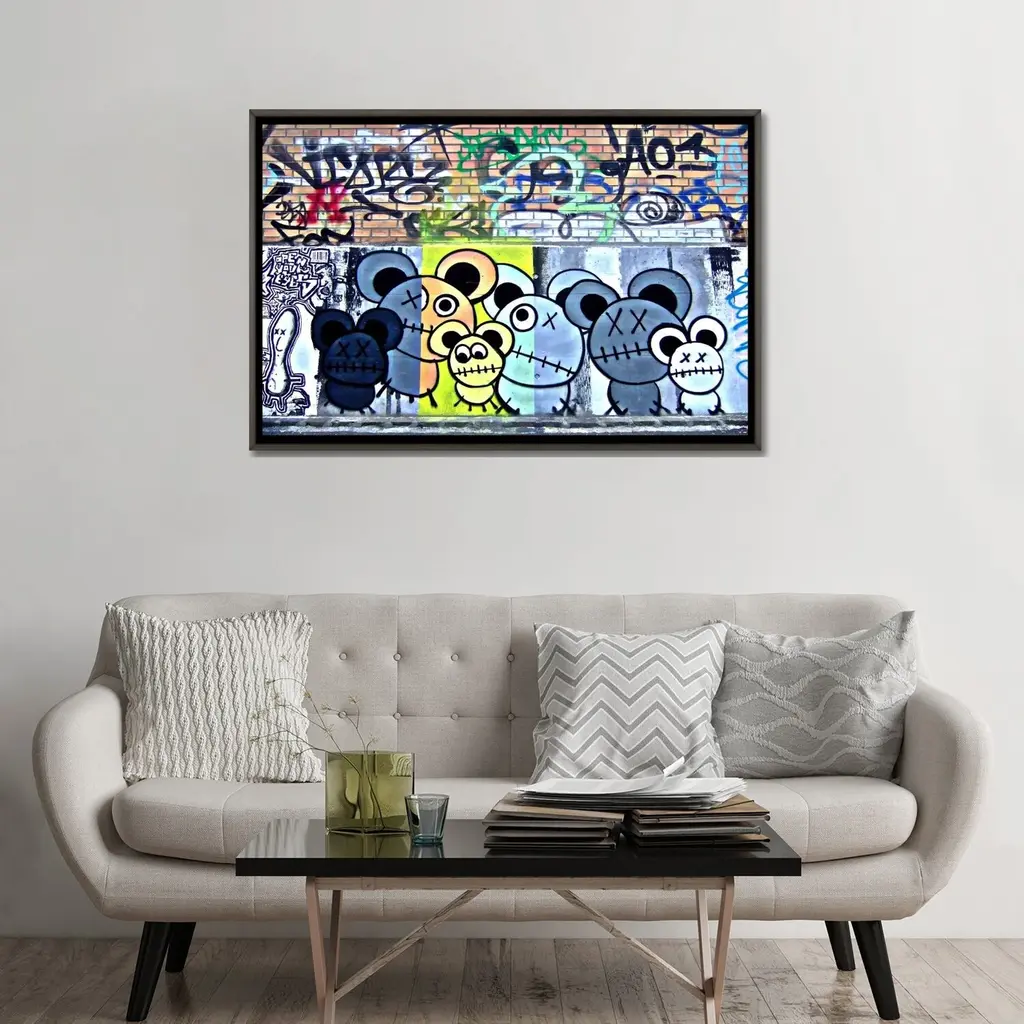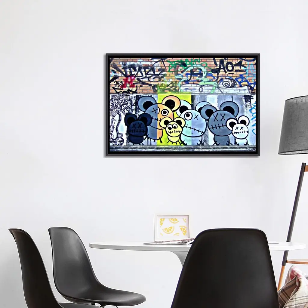 Icanvas "Of Mostly Mice Graffiti" By Unknown Artist Framed - Charcoal - 18x26