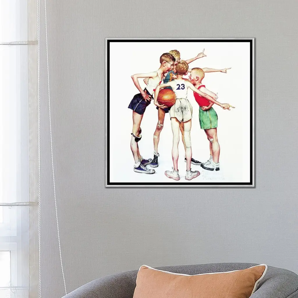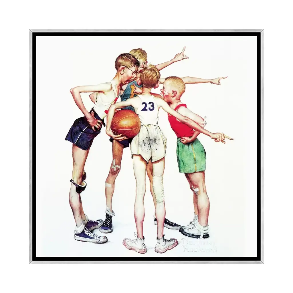 Icanvas "Oh Yeah (Four Sporting Boys- Basketball)" By Norman Rockwell Framed - 18x18 - Charcoal