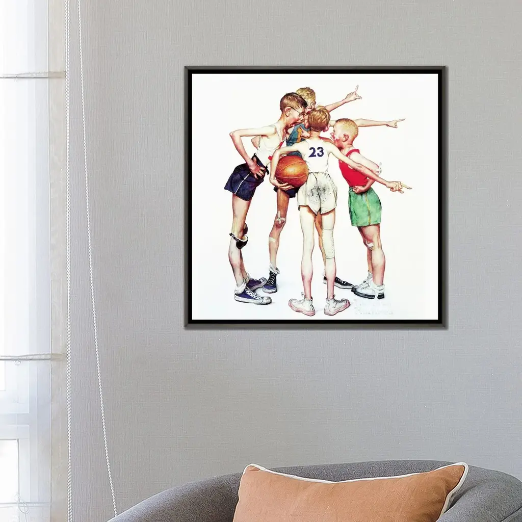 Icanvas "Oh Yeah (Four Sporting Boys- Basketball)" By Norman Rockwell Framed - 26x26 - Ebony
