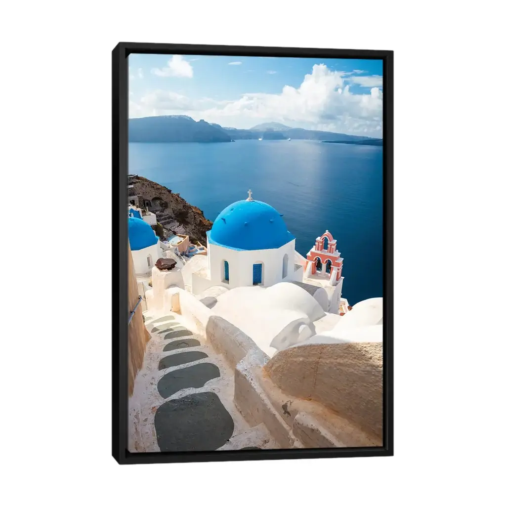Icanvas "Oia, Santorini" By Matteo Colombo Framed Canvas Print - Gold - 40x26