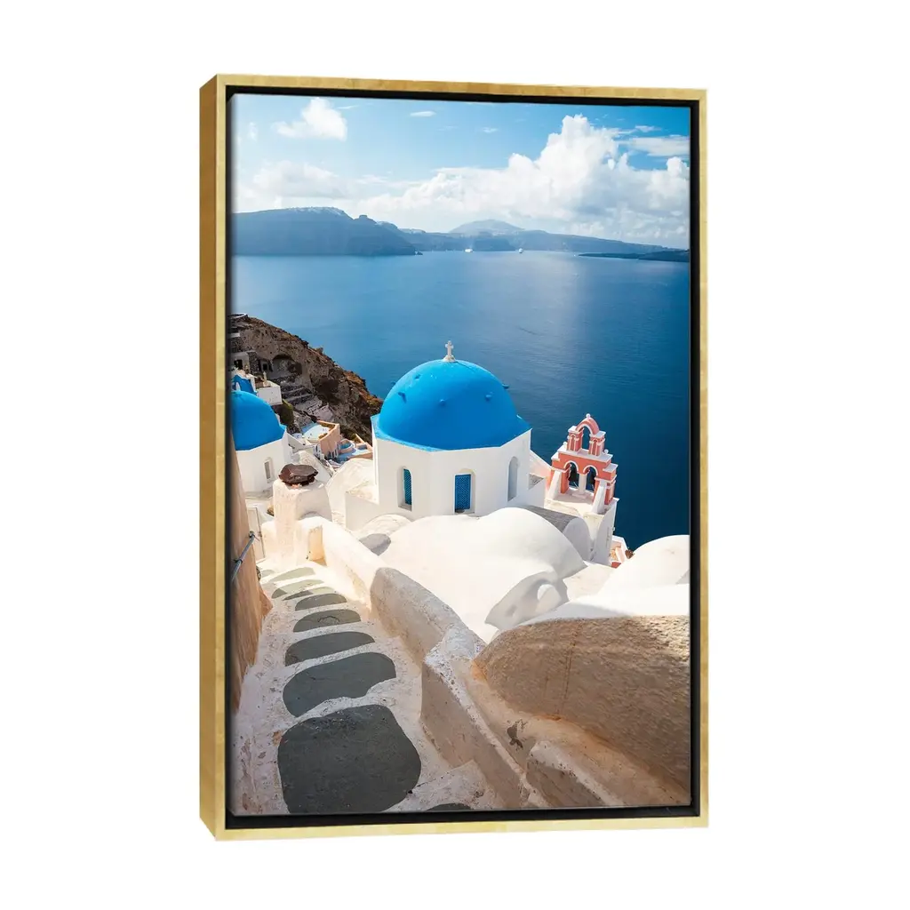 Icanvas "Oia, Santorini" By Matteo Colombo Framed Canvas Print - Gold - 48x32