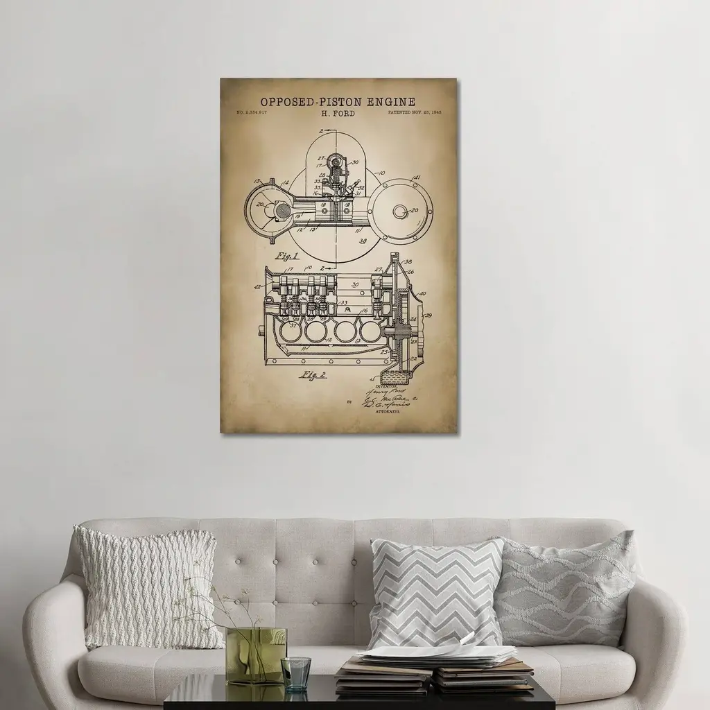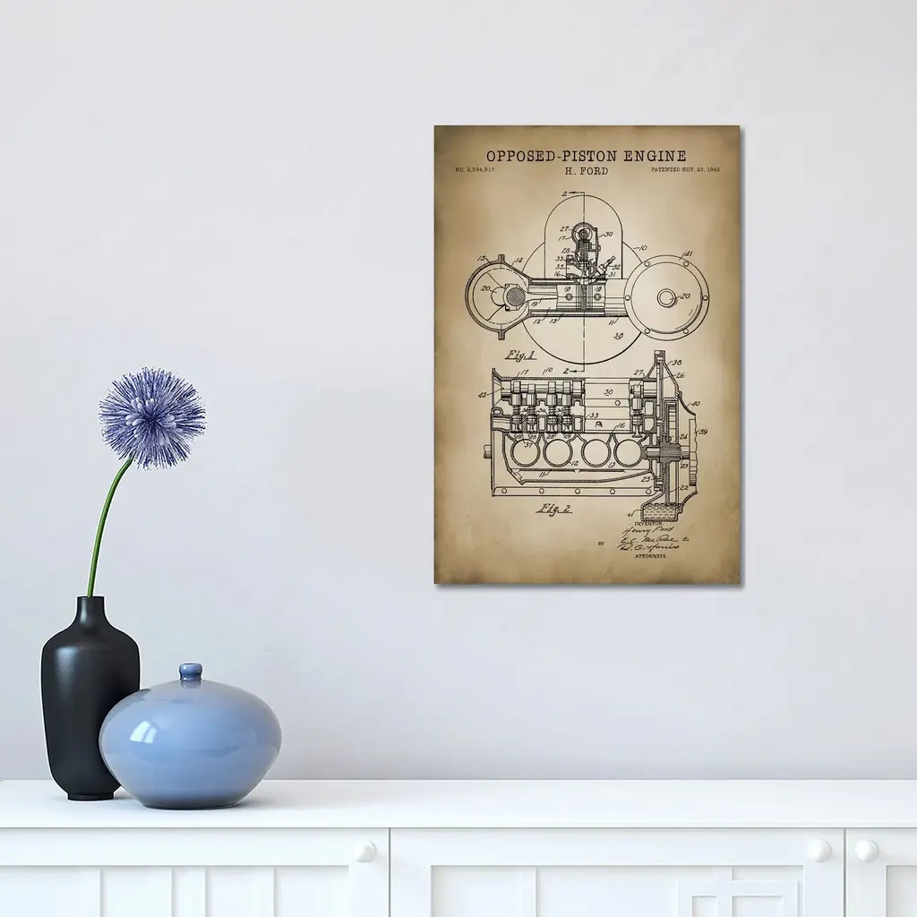Icanvas "Opposed-Piston Engine" By Patentprintstore Canvas Print - 12x8x0.75