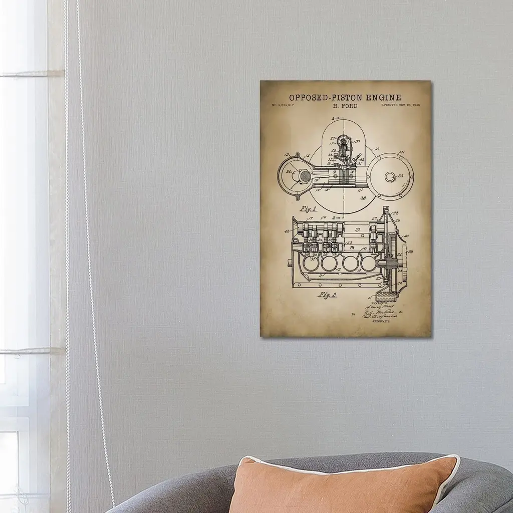 Icanvas "Opposed-Piston Engine" By Patentprintstore Canvas Print - 48x32x1.5