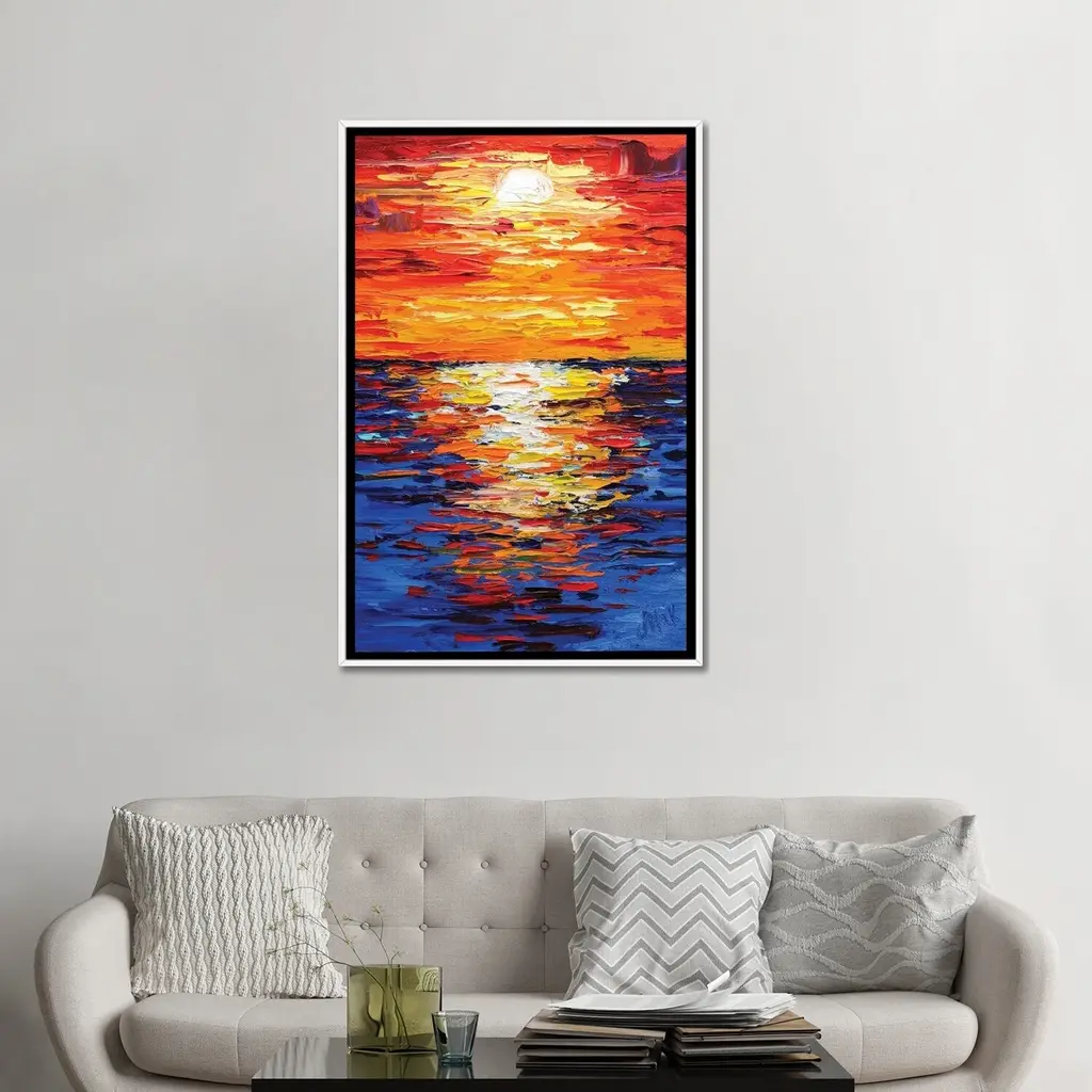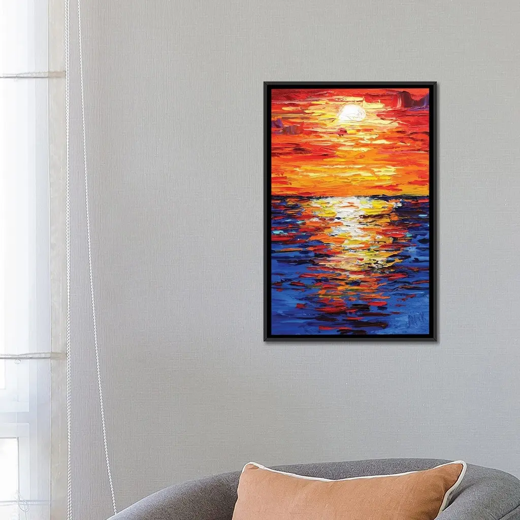 Icanvas "Orange Sunset" By Nataly Mak Framed Canvas Print - Black - 26x18