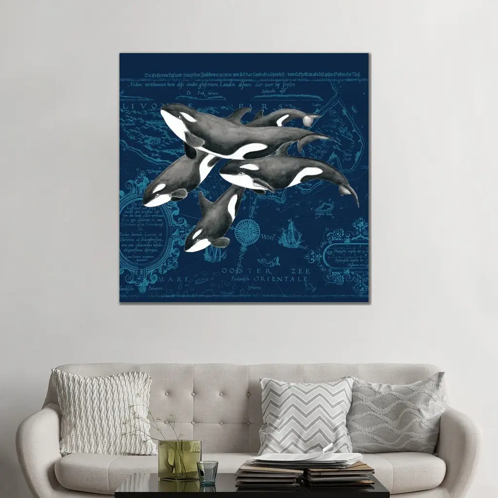 Icanvas "Orca Whale Pod Vintage Map Indigo" By Seven Sirens Studios Canvas Print - 26x26x1.5