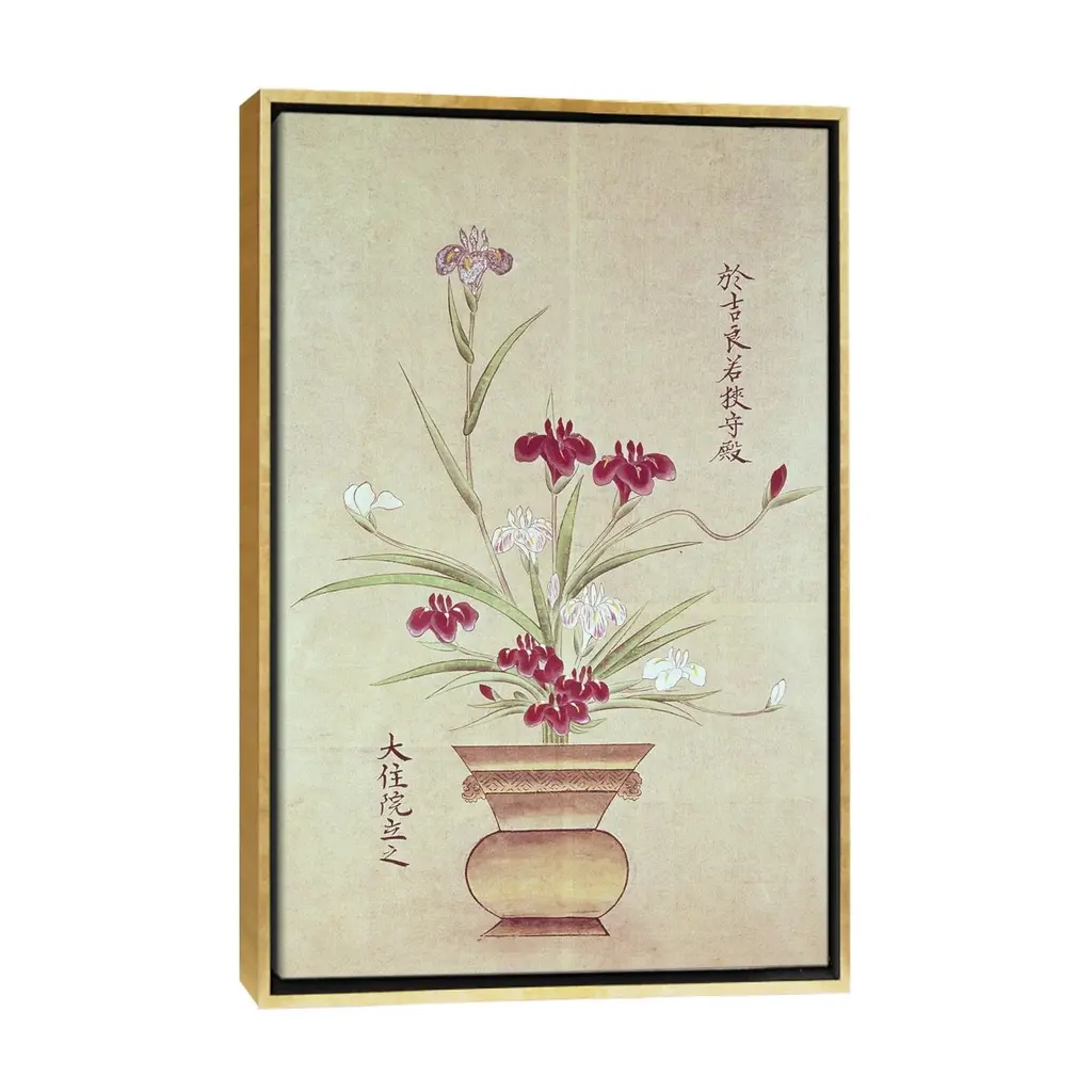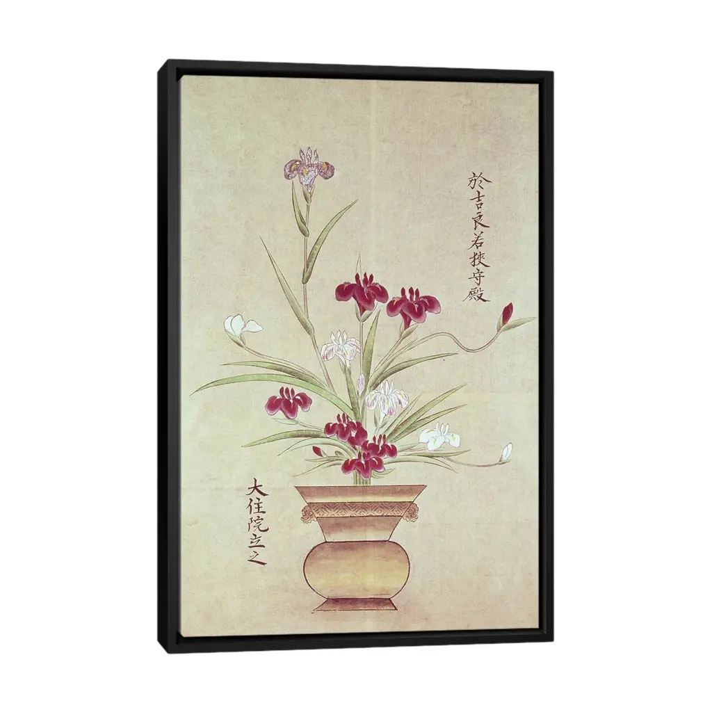 Icanvas "Orchids " By Japanese School Framed Canvas Print - Black - 40x26