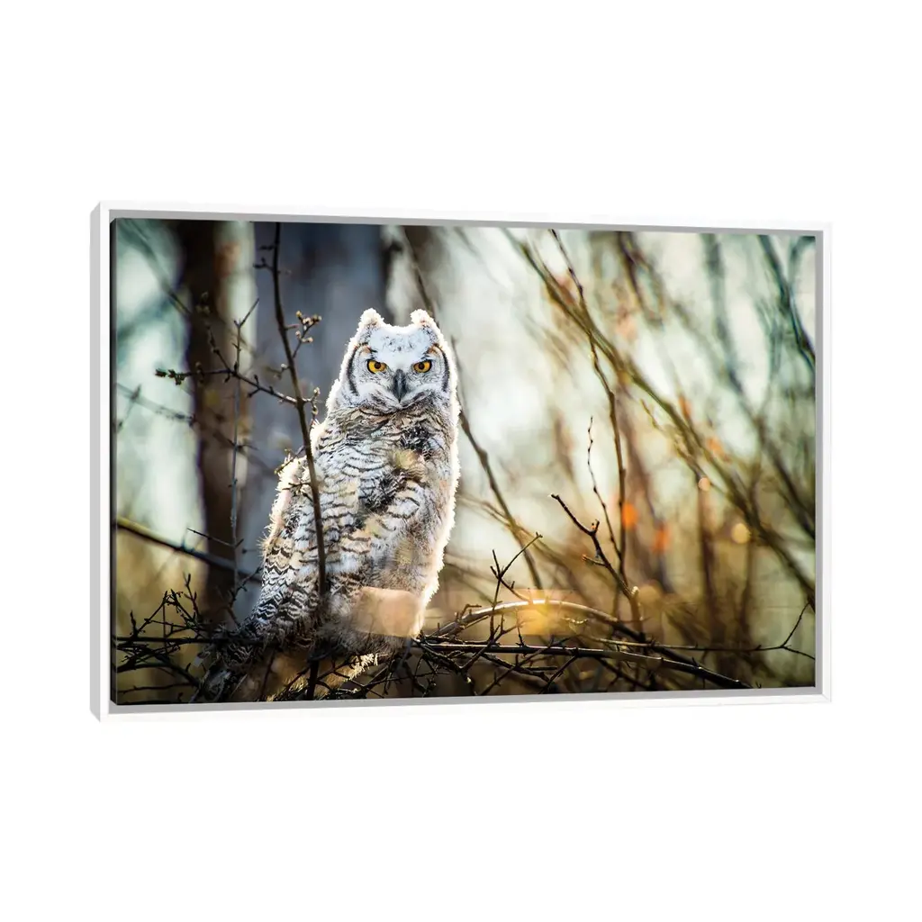 Icanvas "Owl At The Woods" By Nik Rave Framed Canvas Print - White - 26x40