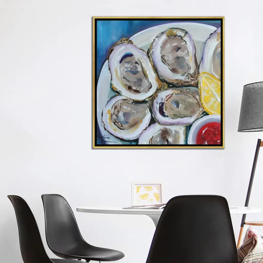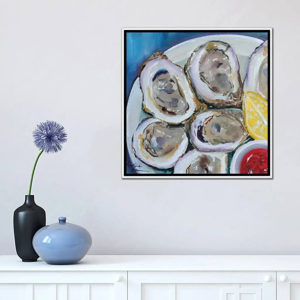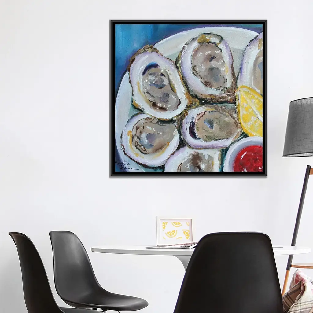 Icanvas "Oysters On The Half Shell" By Kristine Kainer Framed Canvas Print - Black - 26x26