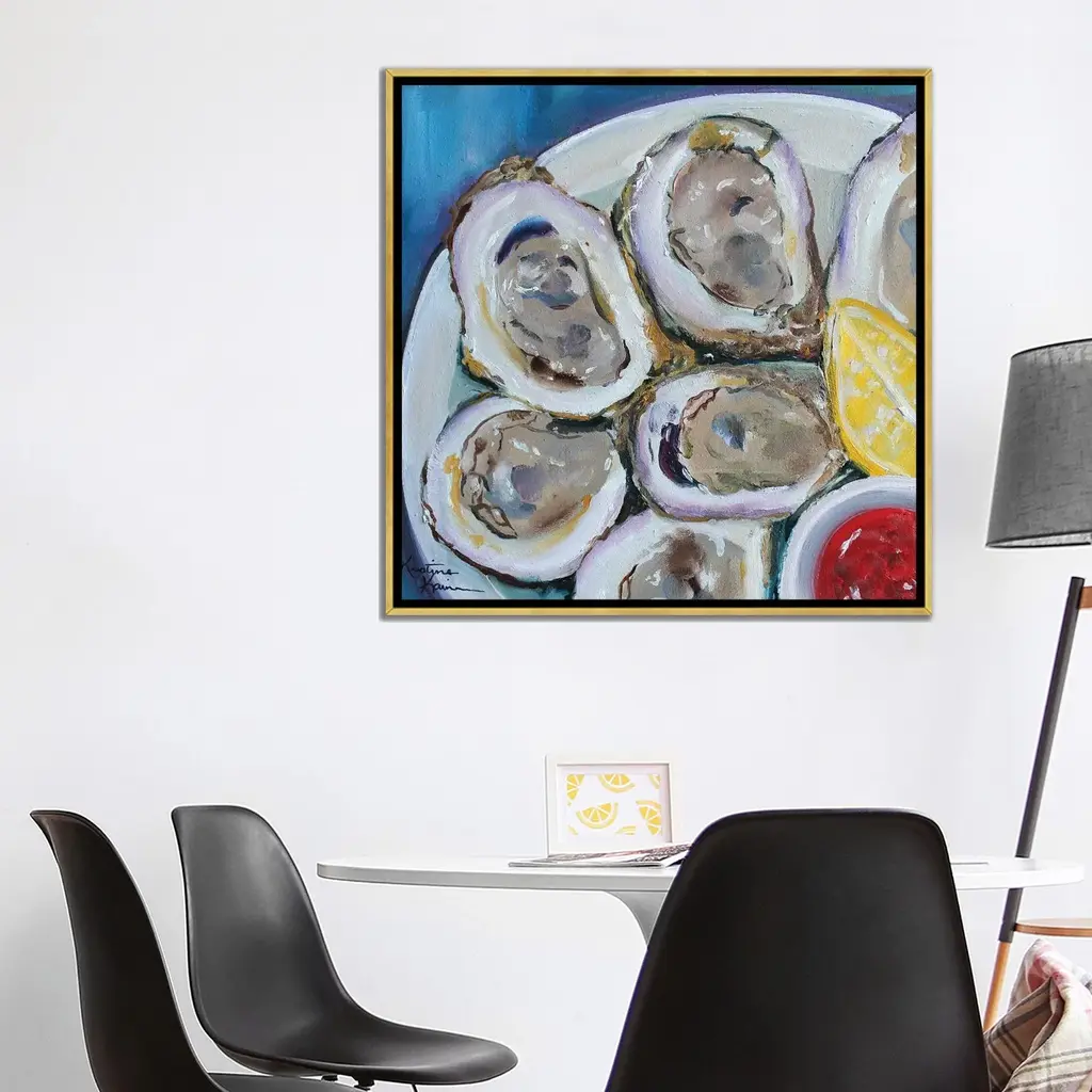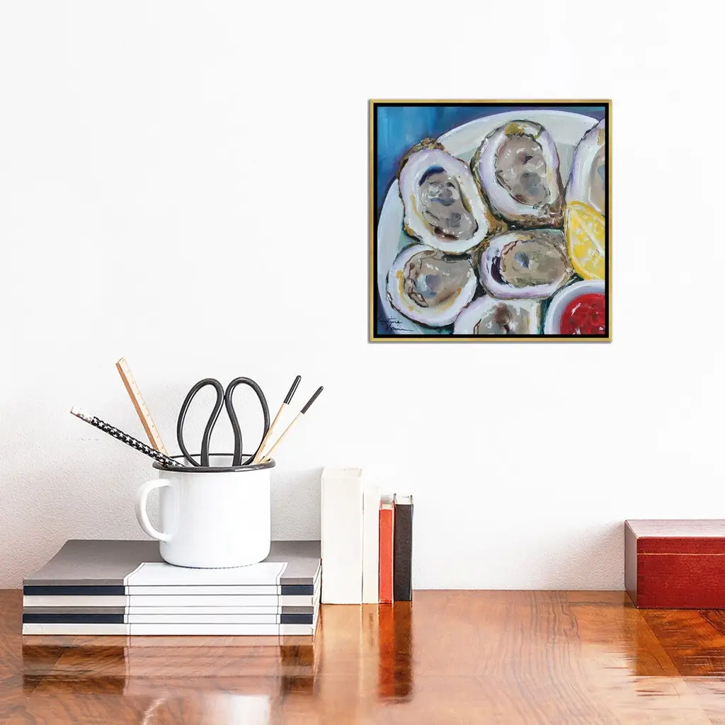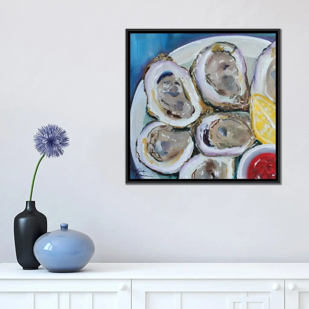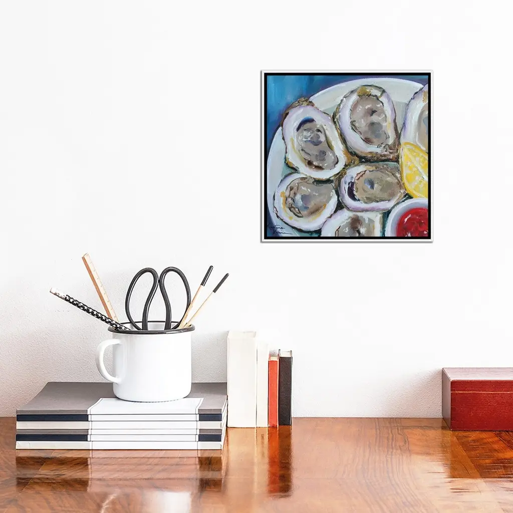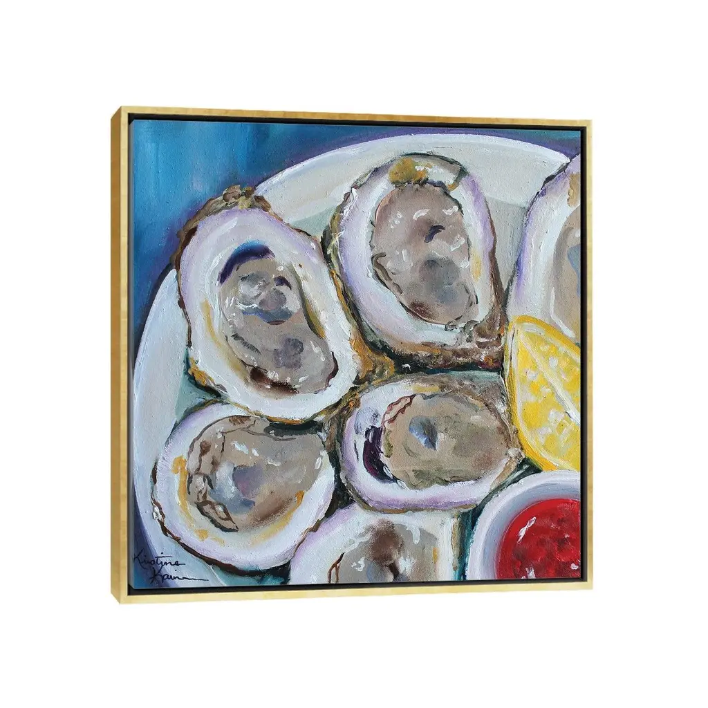 Icanvas "Oysters On The Half Shell" By Kristine Kainer Framed Canvas Print - White - 12x12