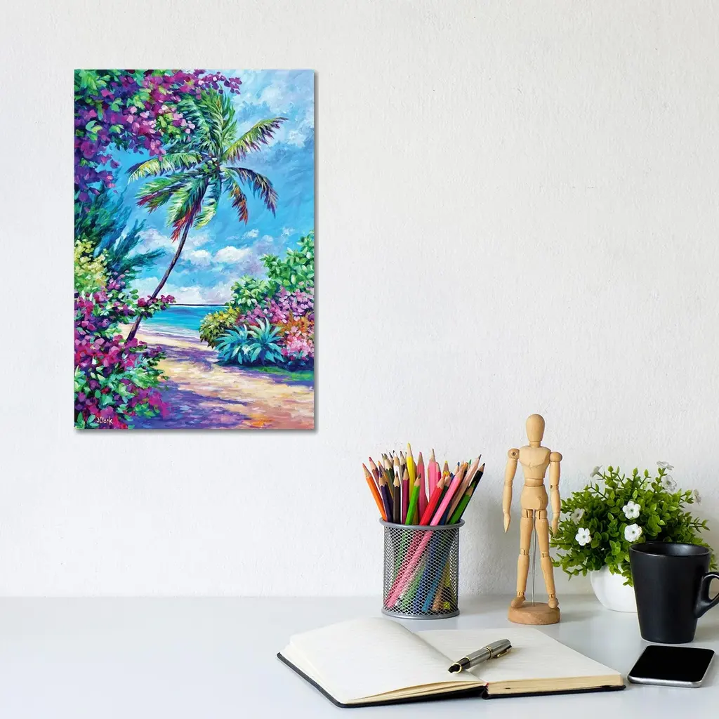 Icanvas "Palm And Bougainvillea" By John Clark Canvas Print - 26x18x1.5