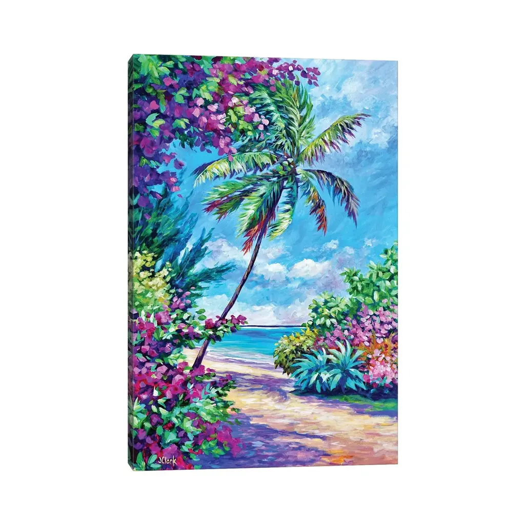 Icanvas "Palm And Bougainvillea" By John Clark Canvas Print - 48x32x1.5