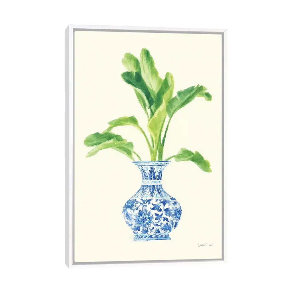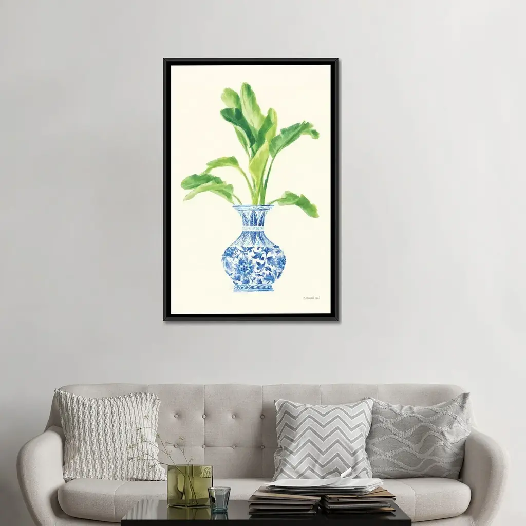 Icanvas "Palm Chinoiserie I" By Danhui Nai Framed Canvas Print - Black - 48x32