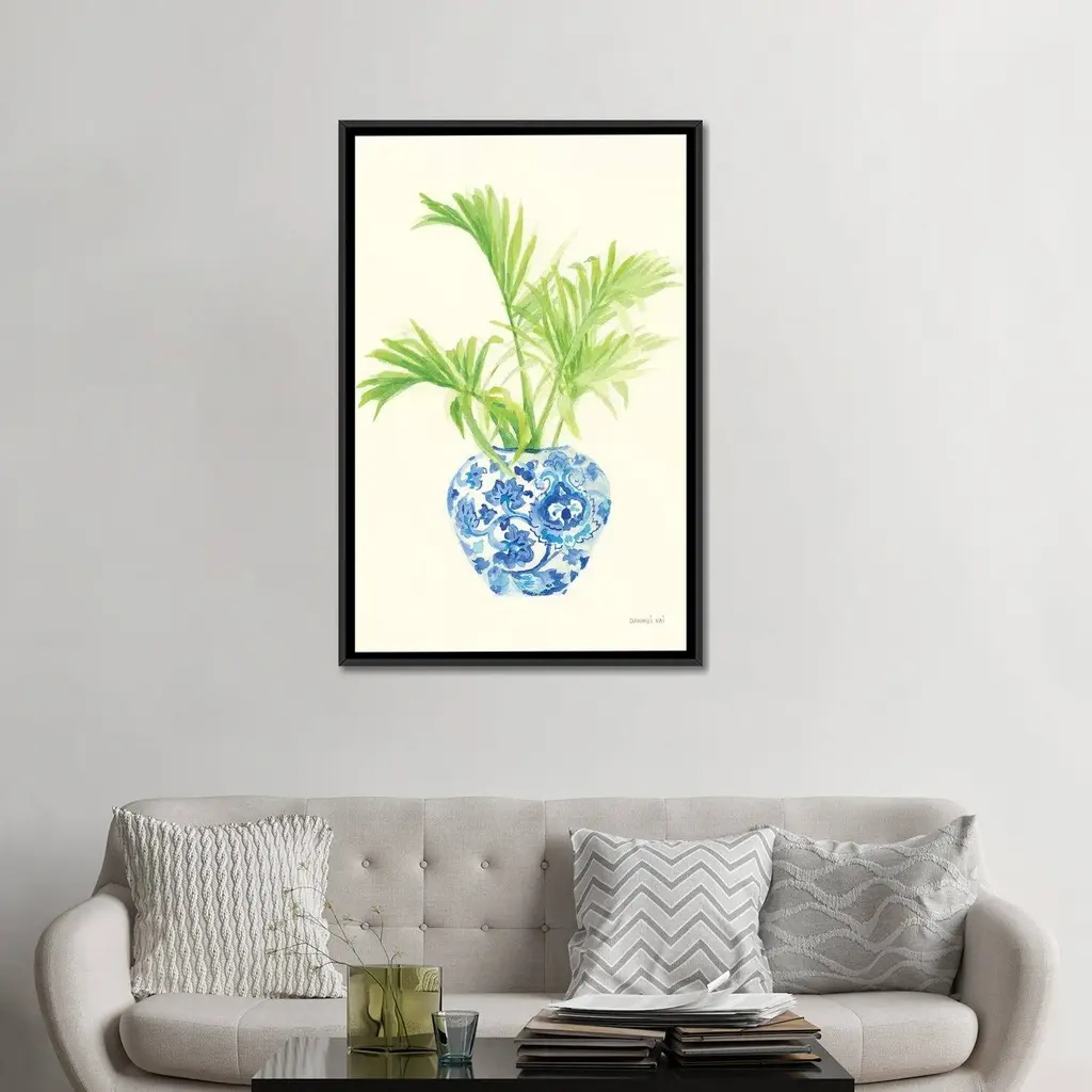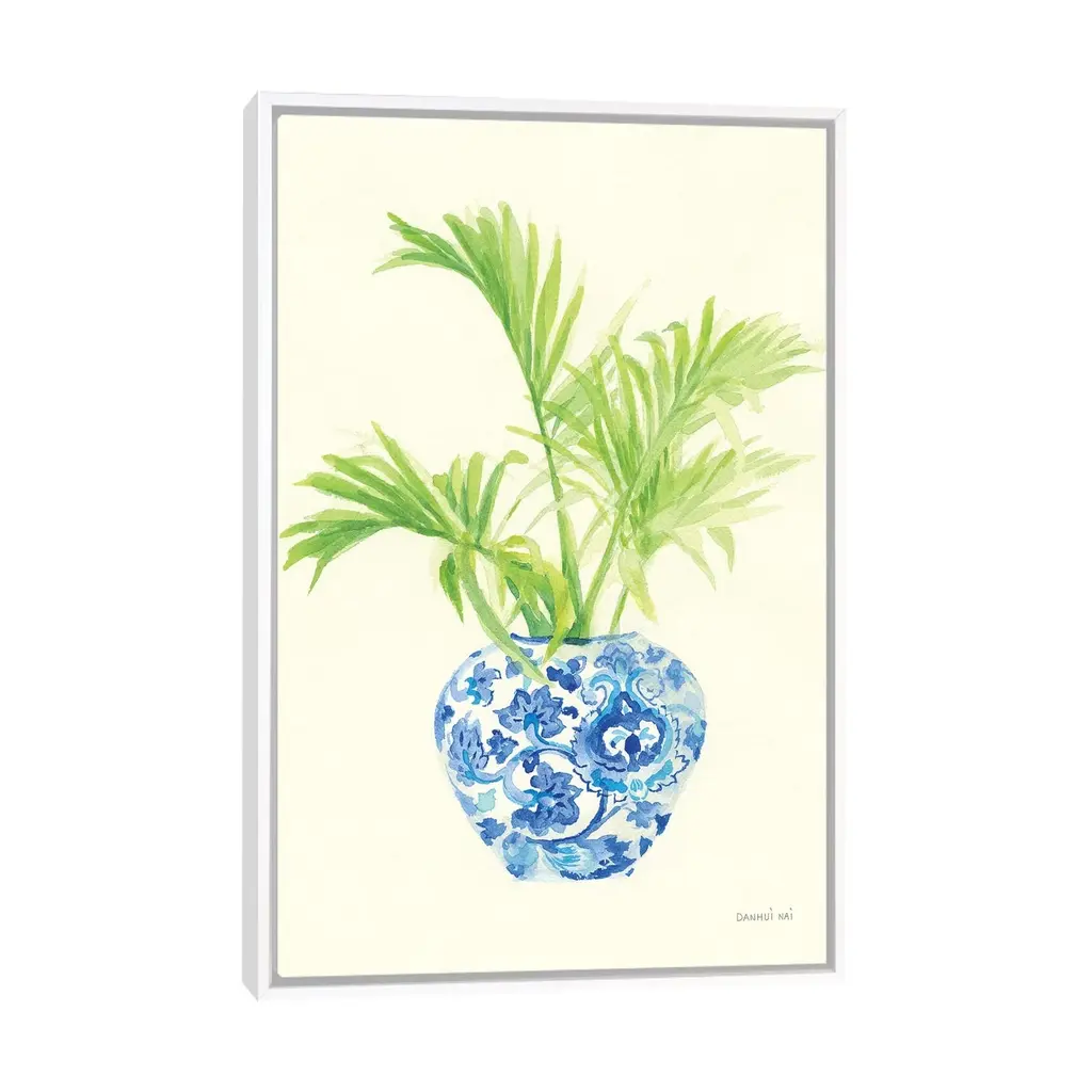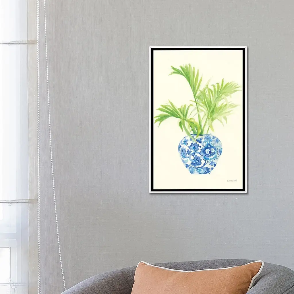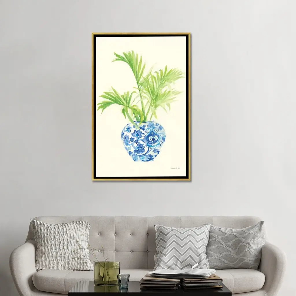Icanvas "Palm Chinoiserie Ii" By Danhui Nai Framed Canvas Print - Gold - 40x26