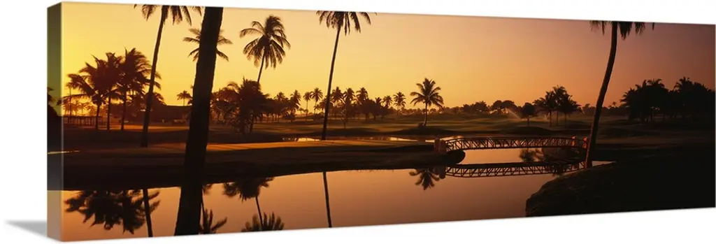Icanvas "Palm Course, Desert Springs Golf Club, Jw Marriott Desert Springs Resort & Spa" By Panoramic Images Framed Canvas Print - 16x48 - Black