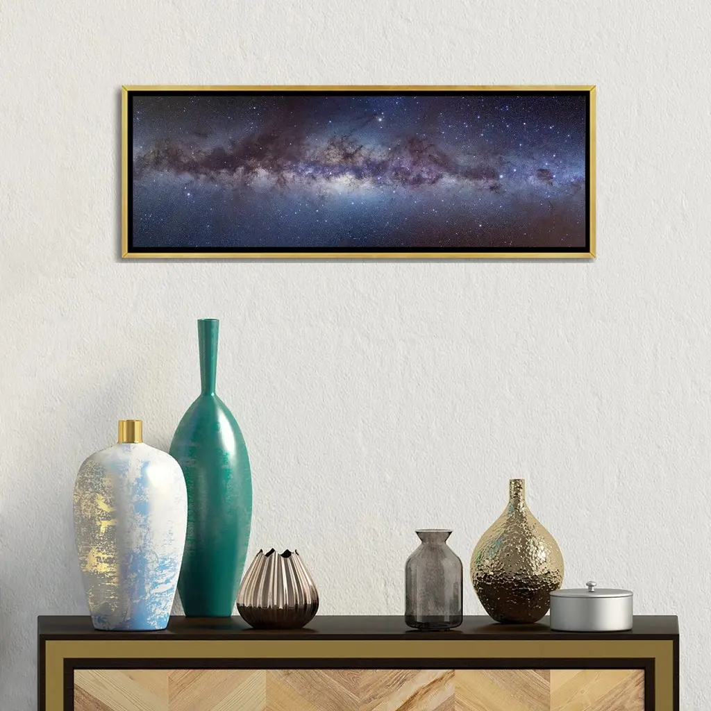 Icanvas "Panorama View Of The Center Of The Milky Way" By Alan Dyer Framed Canvas Print - 12x36 - Gold
