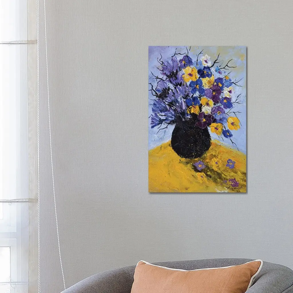 Icanvas "Pansies And Cornflowers" By Pol Ledent Canvas Print - 12x8x0.75