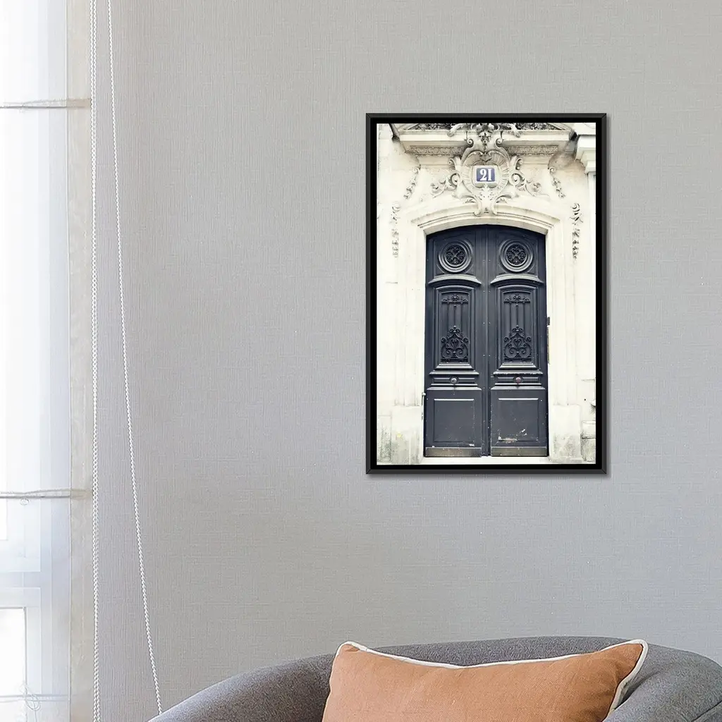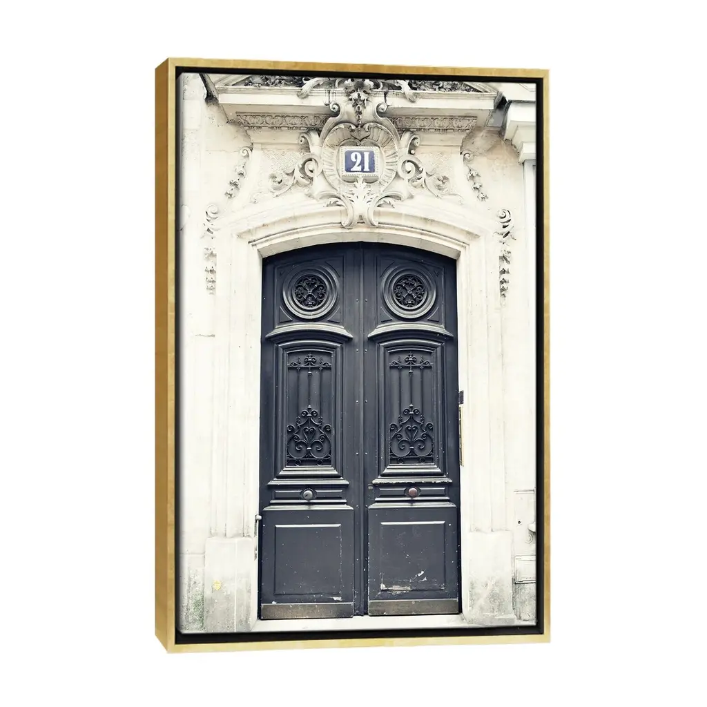 Icanvas "Paris Door, Black I" By Caroline Mint Framed - Gold - 40x26