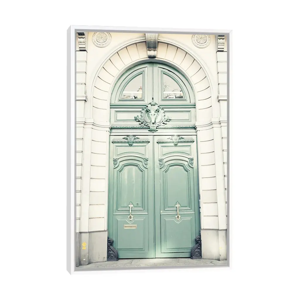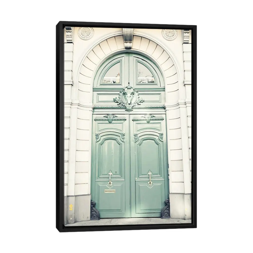 Icanvas "Paris Door, Mint" By Caroline Mint Framed - Black - 48x32