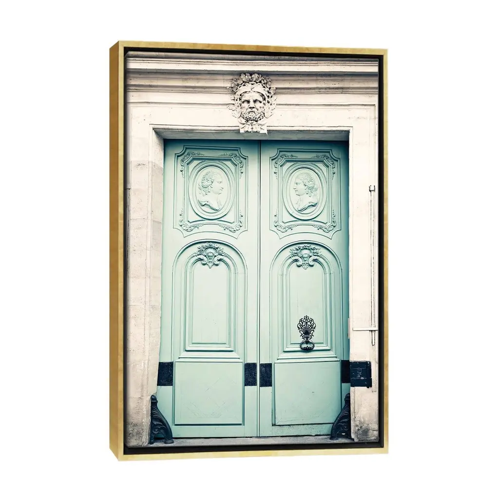 Icanvas "Paris Door, The Lovers" By Caroline Mint Framed - Black - 26x18