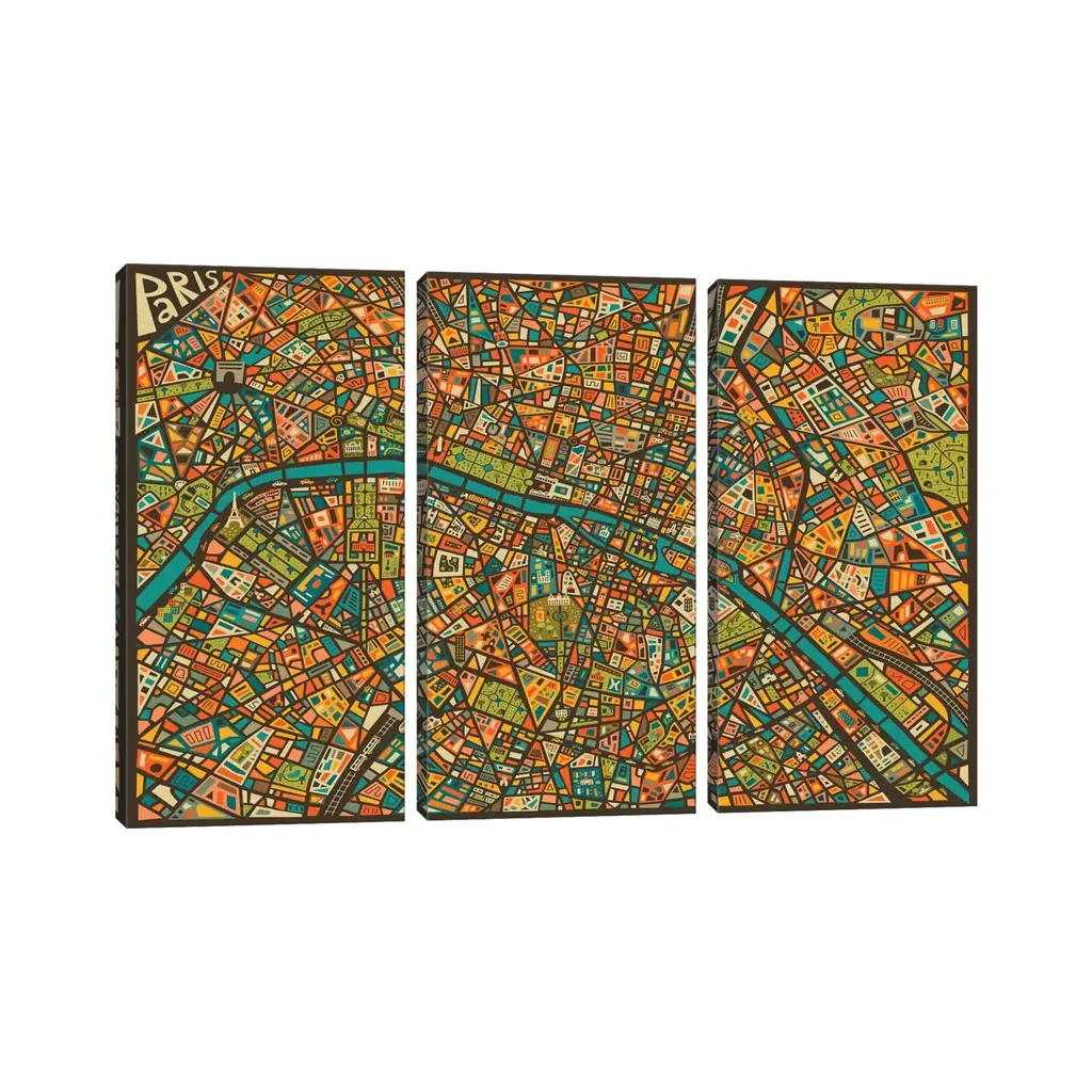 Icanvas "Paris Street Map" By Jazzberry Blue 3-Piece Canvas Wall Art Set - 40x60x1.5
